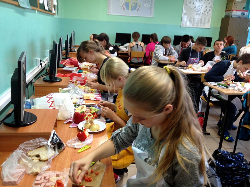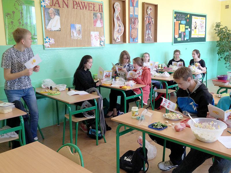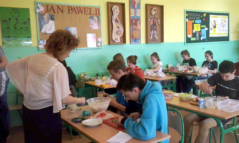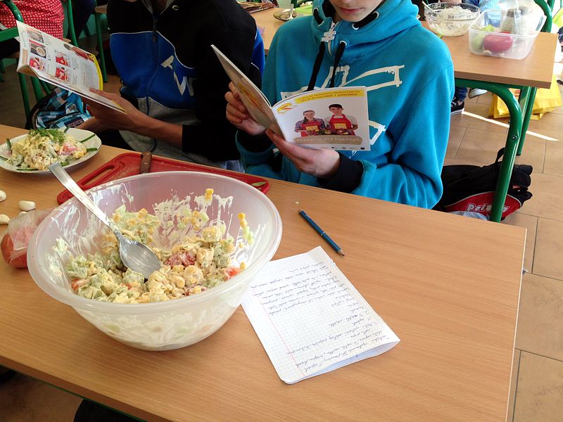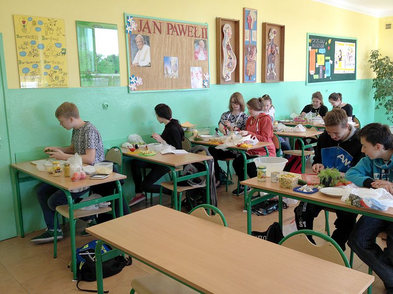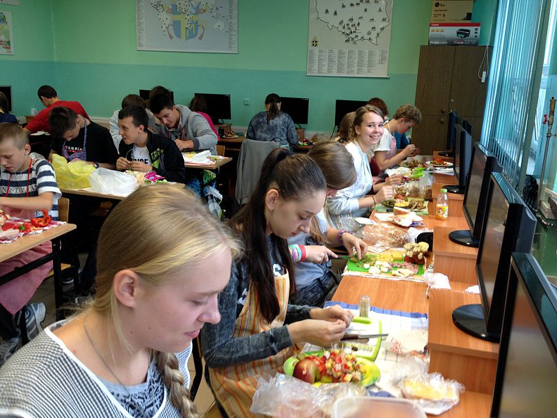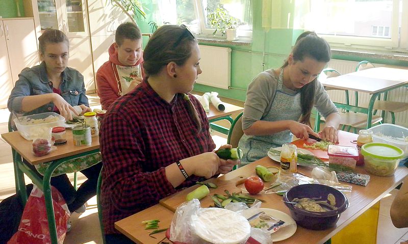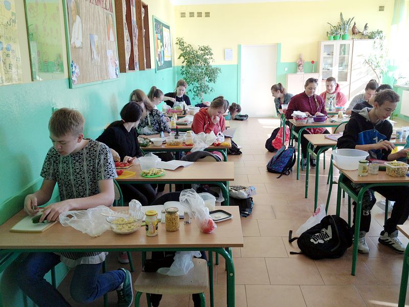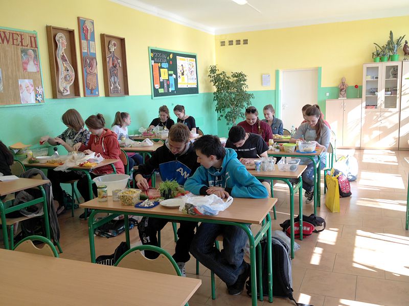Program był realizowany w klasach III b i III c na zajęciach artystycznych i biologii. Zajęcia cieszyły się dużym zainteresowaniem młodzieży, która bardzo chętnie przygotowywała potrawy.