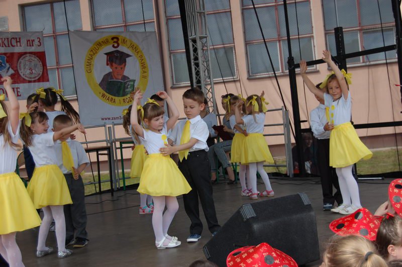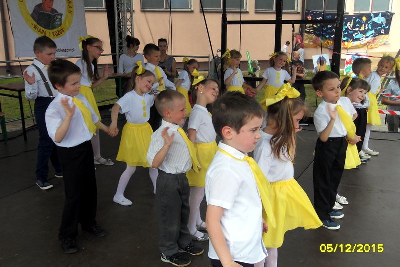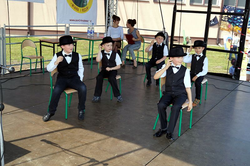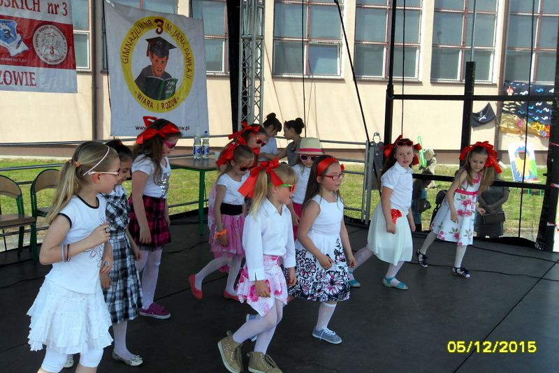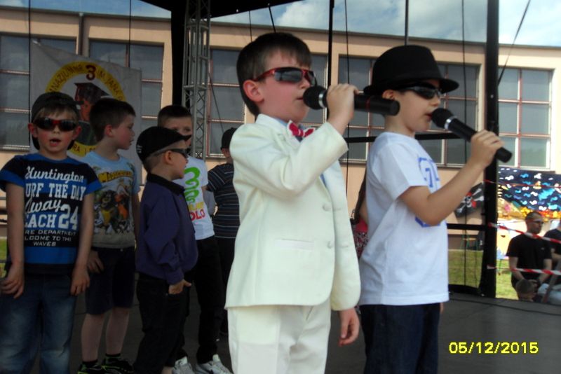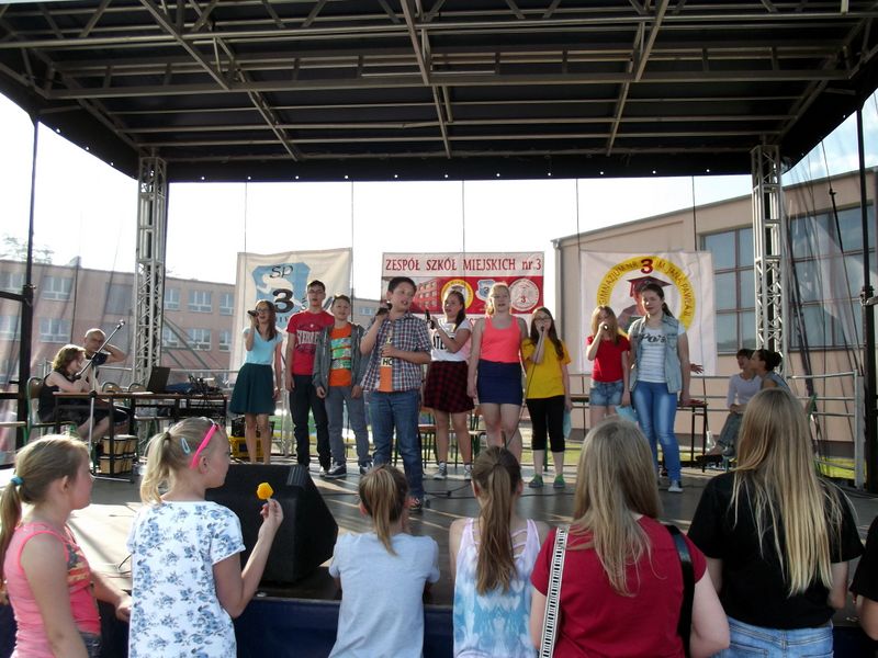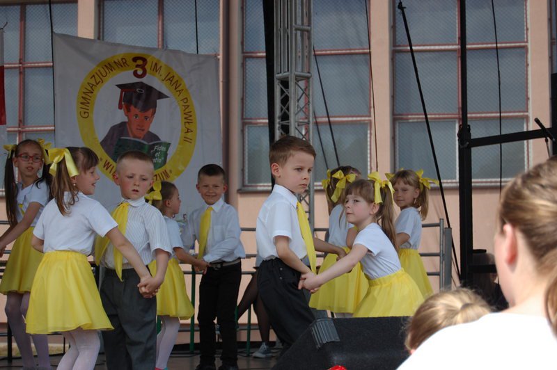 Na scenie przez cały festyn brzmiała muzyka. Prezentowali się na niej uczniowie naszej szkoły począwszy od maluchów kl. 0 – III poprzez uczniów kl. IV – VI i młodzież gimnazjum. W repertuarze znalazły się piosenki, tańce, a wśród nich m.in. „Taniec gentelmenów”, walc wiedeński, układy współczesnego tańca. To był piękny pokaz młodych talentów. Ten wielki szkolny koncert prowadziły absolwentki: Katarzyna Szlonzak i Barbara Marut. W przerwach między występami uczestnicy imprezy uczyli się tańców, które cieszyły się dużym zainteresowaniem. Wystarczyło tylko hasło do tańca i przed sceną od razu znajdowali się ci, którzy z radością zatańczyli ulubioną „Belgijkę”, „Skrzypka” czy porywającą „Czekoladę”. Część muzyczną zakończyły krótkim recitalem nasze absolwentki Agata Buta i Karolina Krawczuk.