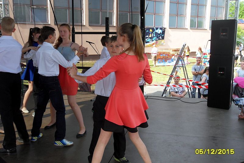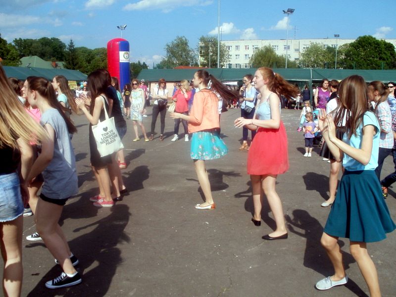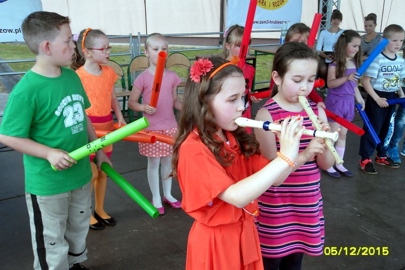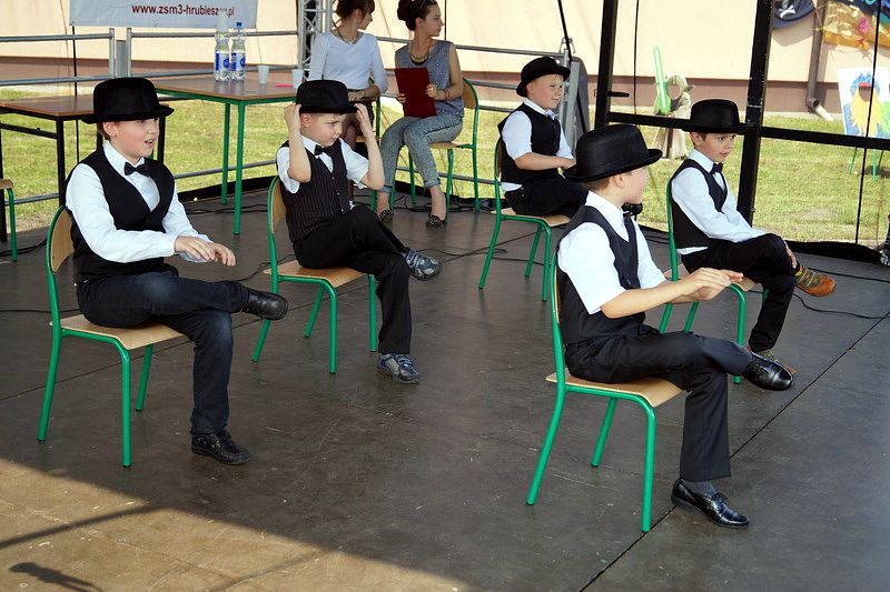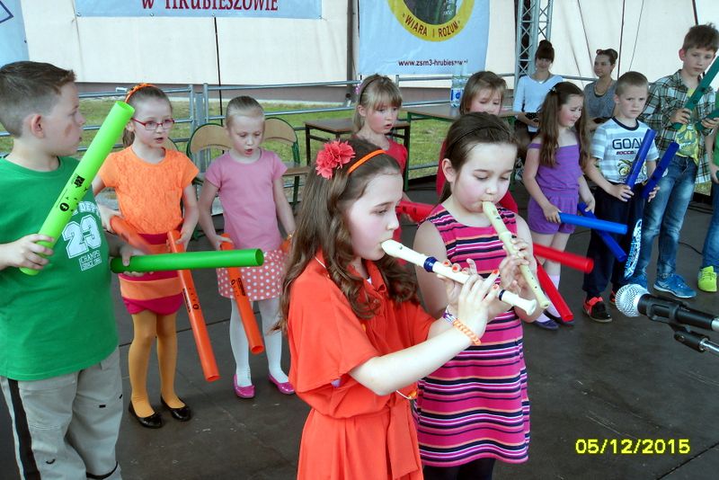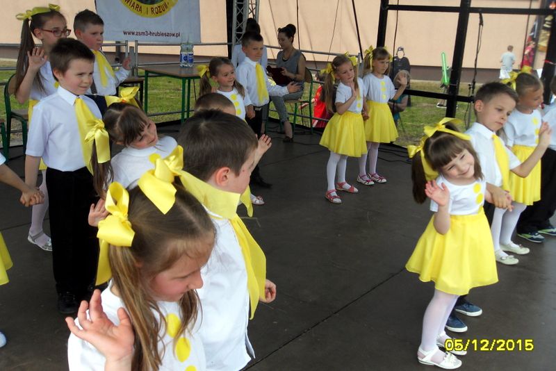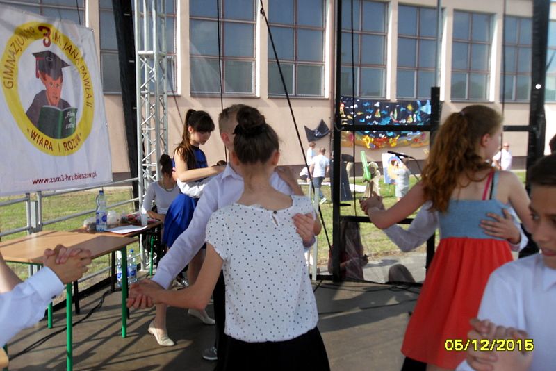 Na scenie przez cały festyn brzmiała muzyka. Prezentowali się na niej uczniowie naszej szkoły począwszy od maluchów kl. 0 – III poprzez uczniów kl. IV – VI i młodzież gimnazjum. W repertuarze znalazły się piosenki, tańce, a wśród nich m.in. „Taniec gentelmenów”, walc wiedeński, układy współczesnego tańca. To był piękny pokaz młodych talentów. Ten wielki szkolny koncert prowadziły absolwentki: Katarzyna Szlonzak i Barbara Marut. W przerwach między występami uczestnicy imprezy uczyli się tańców, które cieszyły się dużym zainteresowaniem. Wystarczyło tylko hasło do tańca i przed sceną od razu znajdowali się ci, którzy z radością zatańczyli ulubioną „Belgijkę”, „Skrzypka” czy porywającą „Czekoladę”. Część muzyczną zakończyły krótkim recitalem nasze absolwentki Agata Buta i Karolina Krawczuk.