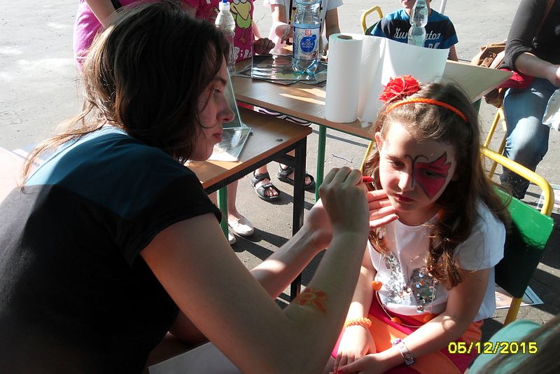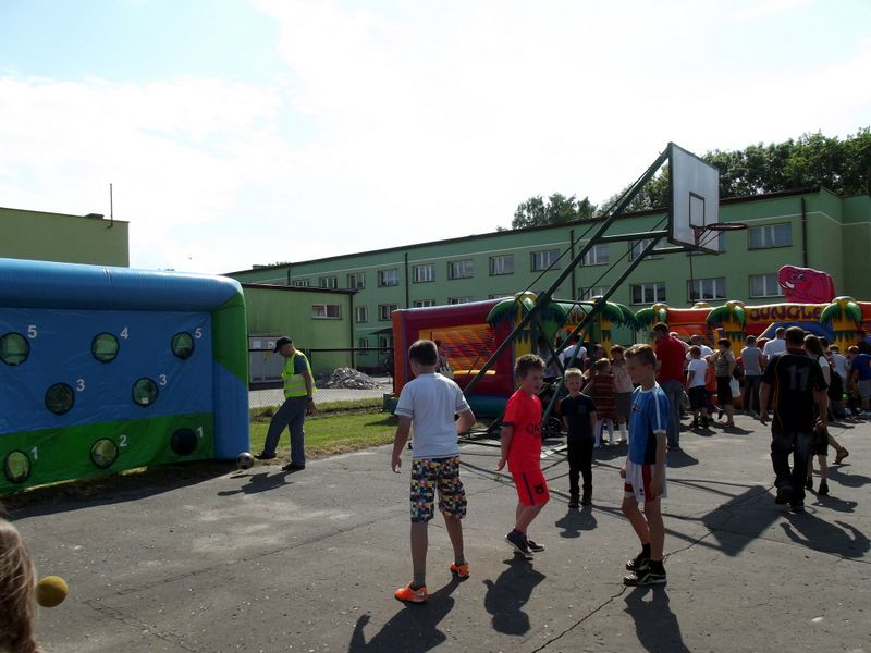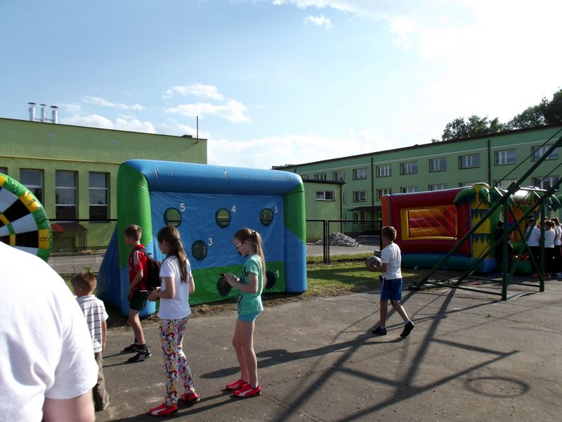 Przybyli goście, mogli wziąć udział w loterii fantowej, którą oblegały dzieci i młodzież. Przy stoisku, gdzie odbywało się malowanie twarzy stał tłum dzieci, które czekały na pomalowanie swojej twarzy wybranym przez siebie wzorem. Niemało atrakcji dostarczyła ściana wspinaczkowa. Pokonanie jej wymagało wiele sprytu, wysiłku i silnej woli, ale chętnych było dużo zarówno młodzieży jak i odważnych z klas młodszych. Wielu emocji dostarczyły również mecze piłki siatkowej, piłki nożnej i streetballu. Powodzenie miały też zabawy rekreacyjne m.in. „ piłkarzyki”.