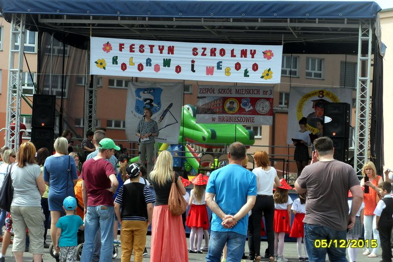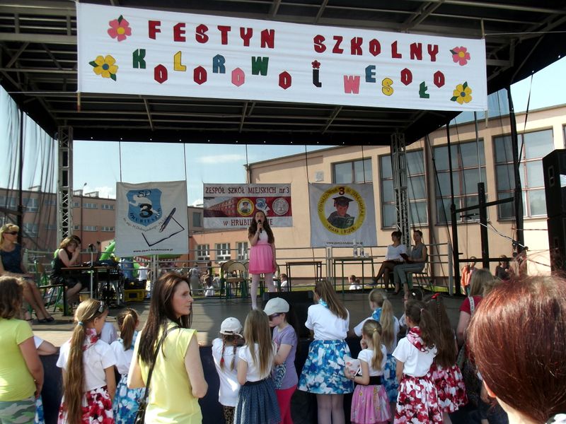 W sobotę, 30.05.2015 r. w godz. 14.00 – 18.00 na boiskach szkolnych Zespołu Szkół Miejskich nr 3 w Hrubieszowie odbył się Festyn Szkolny pod hasłem „Kolorowo i wesoło” zorganizowany z okazji Dnia Dziecka. Celem imprezy była integracja rodziców, dzieci i młodzieży i włączenie wszystkich uczestników do wspólnej zabawy. Festyn miał także charakter charytatywny. Zebrane fundusze podczas imprezy zostały przeznaczone na obiady dla uczniów naszej szkoły z rodzin potrzebujących wsparcia.