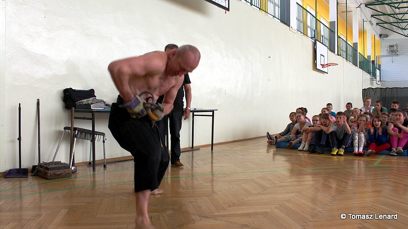 W swoim programie pokazał nam m.in. chodzenie boso po szkle, wyginanie metalowych prętów. Na klatce piersiowej utrzymywał dorosłych ważących ponad 870 kg leżąc na szkle. Oprócz tego mistrz opowiadał nam o sobie, o swoim treningu i pracy nad sobą. Mówił, jak duże znaczenie ma trening, silna wola oraz zdrowy tryb życia. Podkreślał, że wytrzymałość i moc daje mu połączenie sił natury, kosmosu i Boga. Jak zapewniał, każdy, kto systematycznie ćwiczy i konsekwentnie przestrzega właściwych reguł, może osiągnąć sukces. Apelował do uczniów, aby nie opuszczali zajęć wychowania fizycznego, ale przez aktywny tryb życia i systematyczną pracę szli do sukcesu i spełniali swoje marzenia.