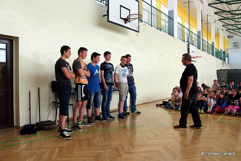 W dniu 29 maja 2015 r. odbył się w naszej szkole „Pokaz możliwości ludzkiego organizmu”. Jurij Ziniewicz, były żołnierz sił specjalnych, kaskader, mistrz sztuk walk, po raz drugi już gościł w naszej szkole i dzielił się swoją wiedzą i umiejętnościami ludzkiego organizmu. Uczniowie szkoły podstawowej i gimnazjum wraz z nauczycielami obserwowali z zaciekawieniem do czego może być zdolny jeden człowiek. Jego wyczyny są docenione i zapisane w Księdze Rekordów Guinnessa.