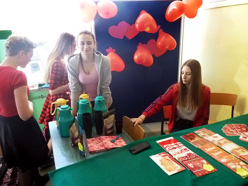 17 lutego, we wtorek, w naszej szkole odbyły się Walentynki. Samorząd Uczniowski jak co roku zorganizował pocztę walentynkową. Na korytarzu szkolnym można było zakupić i wysłać kartki walentynkowe do swojej sympatii. Dodatkowo dostępna była również gorąca czekolada i pyszne pierniczki, oczywiście w kształcie serc.