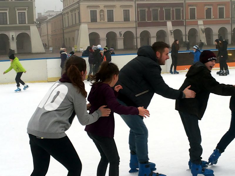 Po trudach klasyfikacji semestralnej, 23.01.2015 uczniowie klas I b, I c, II b gimnazjum pod opieką wychowawców udali się na wycieczkę do Zamościa. W programie było „coś dla ducha i dla ciała”. W kinie „Stylowy” uczniowie obejrzeli film „Hobbit: Bitwa pięciu armii”. Z zainteresowaniem śledzili opowieść pełną niesamowitych wydarzeń i magicznych postaci, przedstawiającą odwieczną walkę dobra ze złem. Następnie udali się na lodowisko, aby przez godzinę relaksować się na świeżym powietrzu i doskonalić lub zdobywać umiejętność jazdy na łyżwach. Jak się bawili zobaczcie na fotografiach.