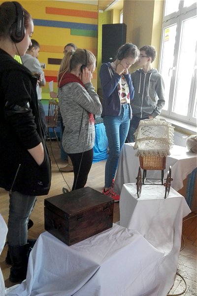 Uczniowie usłyszeli, jak brzmiało podwórko w dawnych czasach i zobaczyli na slajdach gry , w jakie się grało. Dowiedzieli się o tradycyjnej kuchni różnych kultur. Zrobili sobie zdjęcia nie z tej epoki…oraz wysłuchali wielu fascynujących opowieści o świecie, który pamiętają już tylko najstarsi mieszkańcy Polski.