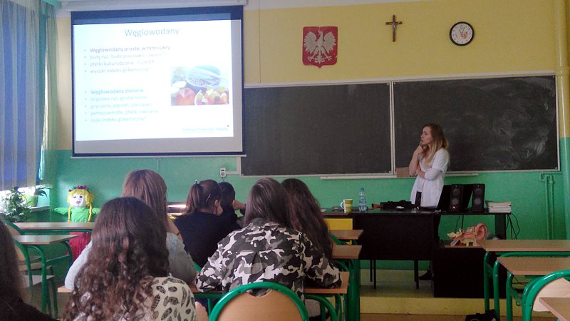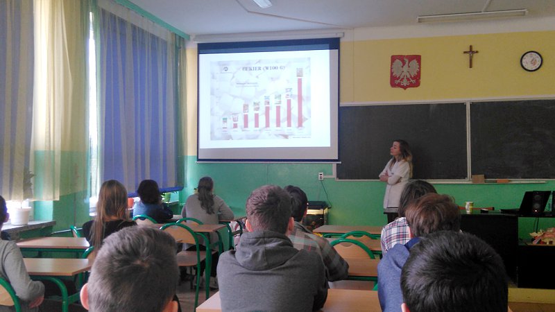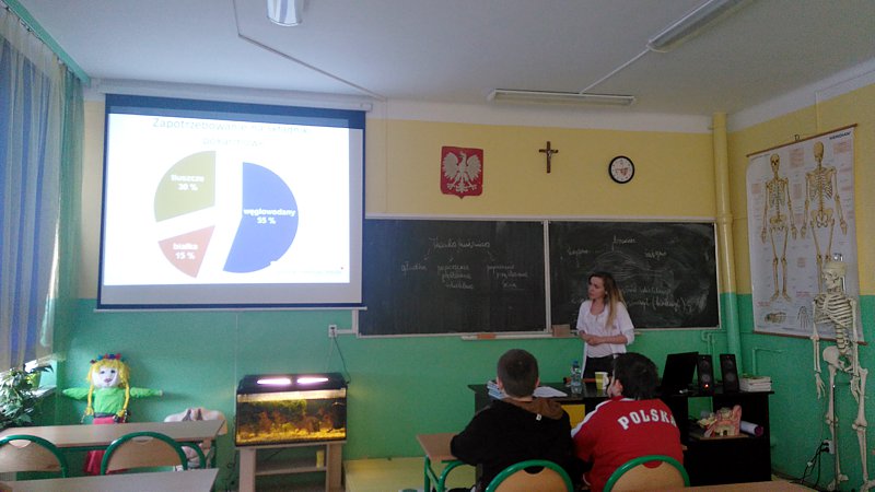 Głównym celem zorganizowanych spotkań było ukazanie naszej młodzieży jak ważne jest zdrowe odżywianie i zdrowy styl życia. Podczas tych spotkań mogli sobie odpowiedzieć na czym ono polega i jak się odżywiać by dostarczać naszemu organizmowi niezbędnych substancji odżywczych, witamin i minerałów, których największe bogactwo znajdziemy w warzywach, owocach oraz w produktach nie przetworzonych. Uświadamiała dlaczego tak ważne jest ich uwzględnienie w naszej codziennej diecie. Pani dietetyk zapoznała młodzież z nową piramidą zdrowia, w której podkreśliła, że nie tylko odżywianie jest ważne ale do tego dochodzi również wysiłek fizyczny, czyli uprawianie sportu. Połączenie obydwu tych rzeczy w okresie dojrzewania bardzo korzystnie wpływa na zdrowie i kondycję. Sport jest bardzo ważny ponieważ wpływa na właściwą przemianę materii, jest też odpowiedzialny za spalanie tłuszczu i rozwój mięśni. Pani dietetyk również podczas spotkania ważyła chętnych uczniów i wyjaśniała prawidłowy skład masy ciała indywidualnie z uczniem. W trakcie prezentacji rozwinęła się również dyskusja młodzieży z panią dietetyk, uczniowie chętnie zadawali wiele pytań związanych ze zdrowym odżywianiem jak również, jakich niezdrowych produktów omijać w codziennym odżywianiu się.