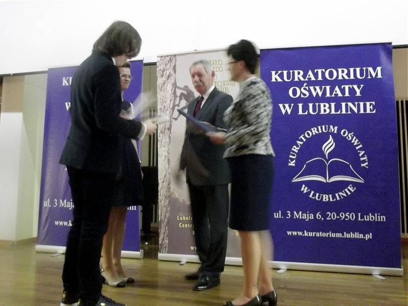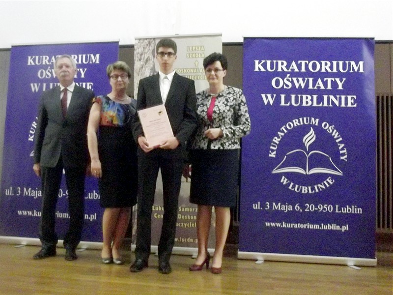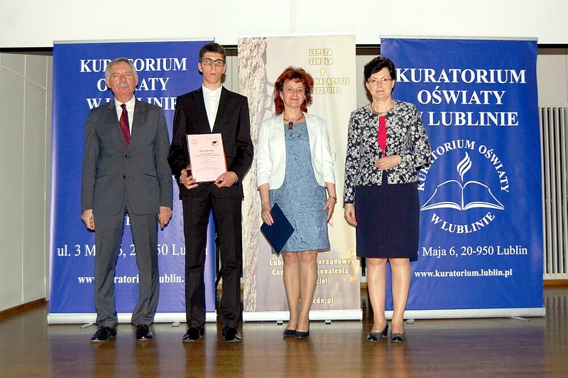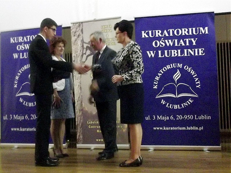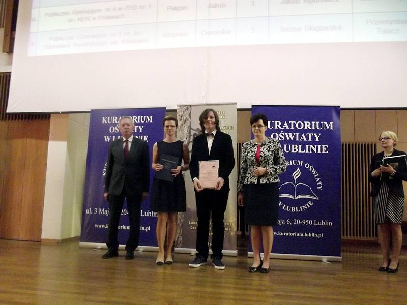 W czwartek, 12 maja 2016 roku w Lublinie odbyła się UROCZYSTA GALA podsumowująca konkursy przedmiotowe organizowane przez Lubelskiego Kuratora Oświaty. Uroczystość miała miejsce w auli Stefana Kardynała Wyszyńskiego Katolickiego Uniwersytetu Lubelskiego Jana Pawła II. Nagrody i dyplomy z rąk pani Kurator Teresy Misiuk otrzymali między innymi uczniowie z Gimnazjum nr 3 im. Jana Pawła II. Marcin Gąsior, uczeń klasy III a został podwójnym LAUREATEM Kuratoryjnego Konkursu Przedmiotowego z FIZYKI i MATEMATYKI. Mikołaj Janik, uczeń klasy III b został LAUREATEM Kuratoryjnego Konkursu Przedmiotowego z JĘZYKA ANGIELSKIEGO.