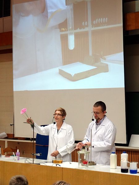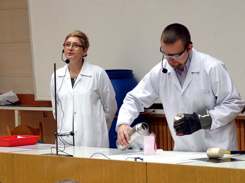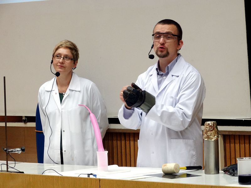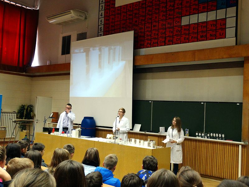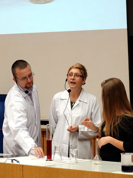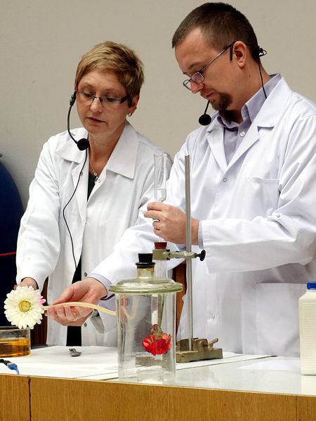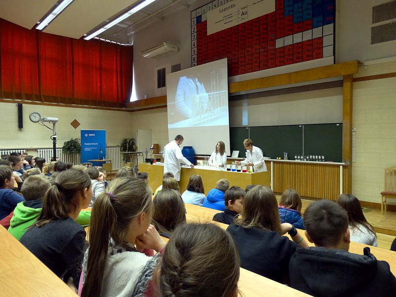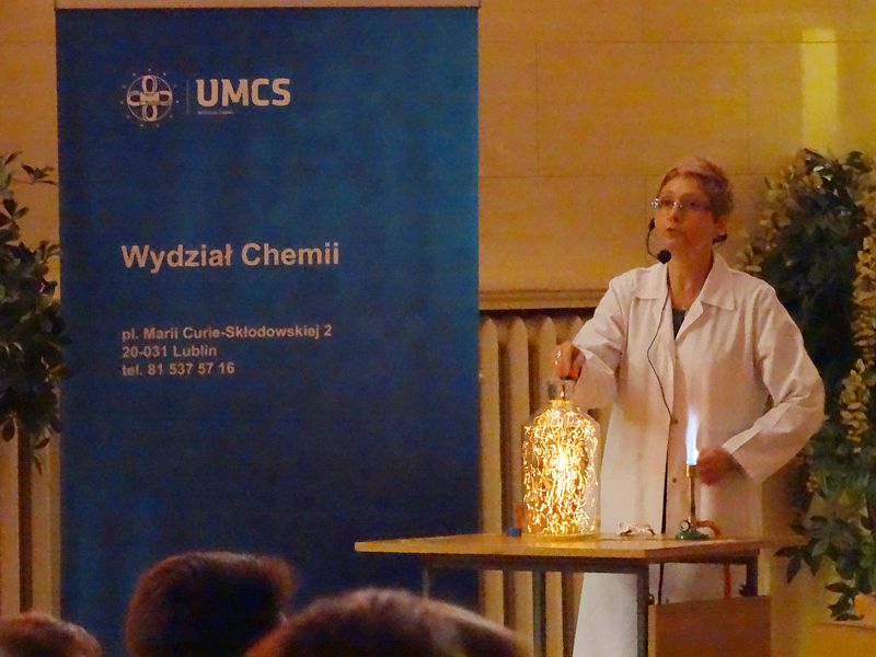 Tradycją naszego gimnazjum są już wyjazdy na pokazy chemiczne organizowane przez Wydział Chemii UMCS w Lublinie. Podtrzymując tę tradycję 26 października 2015 r. grupa gimnazjalistów uczestniczyła w wyjazdowej lekcji chemii. Byliśmy świadkami kolorowych, wybuchowych, zapachowych… jednym słowem bardzo ciekawych przemian chemicznych. Prowadzący w prosty i przejrzysty sposób wyjaśniali nam mechanizmy reakcji. Była też spora dawka dobrego humoru i zabawy.