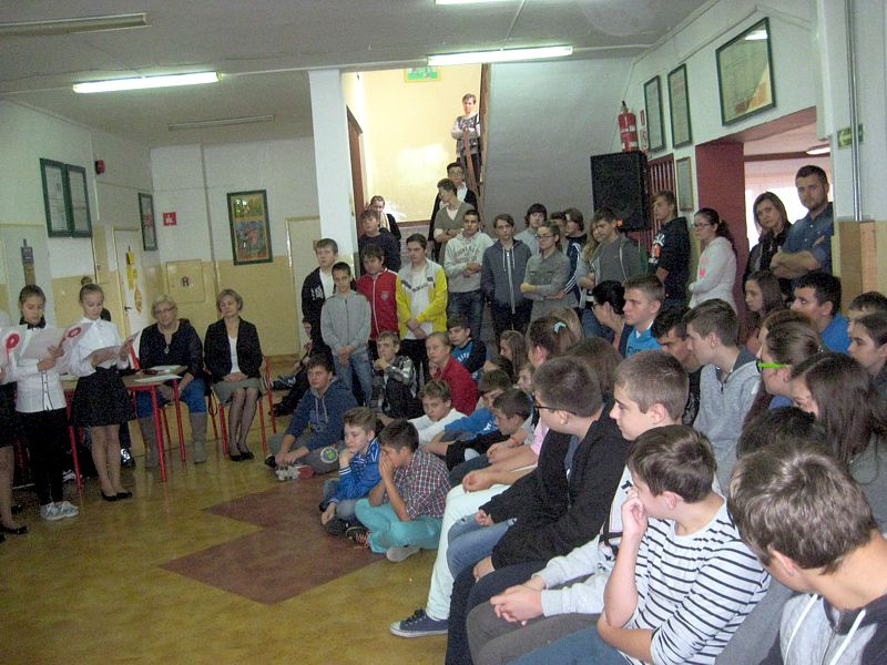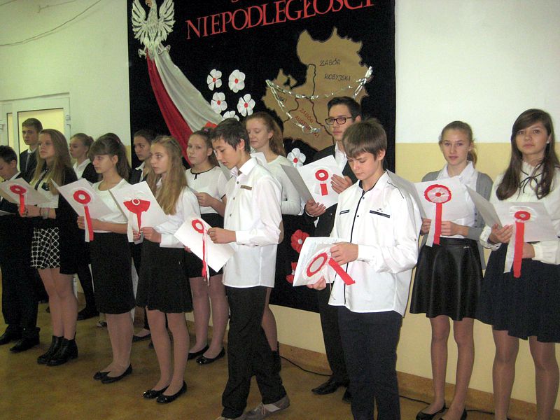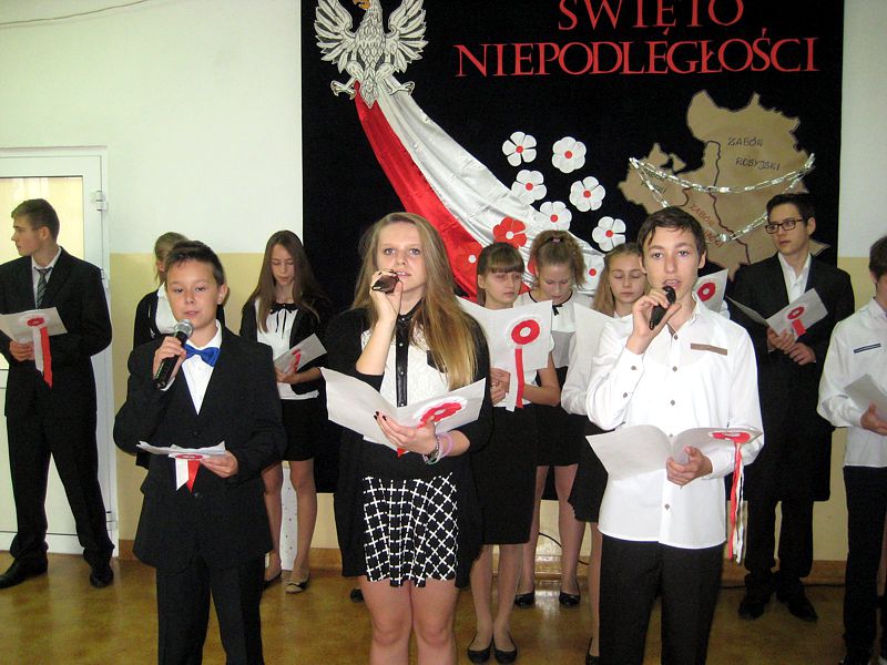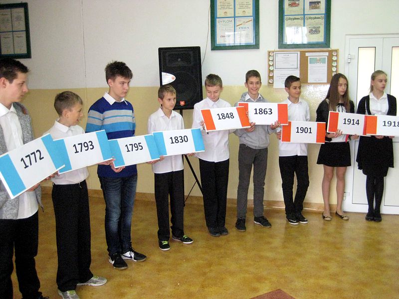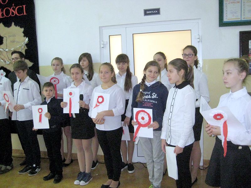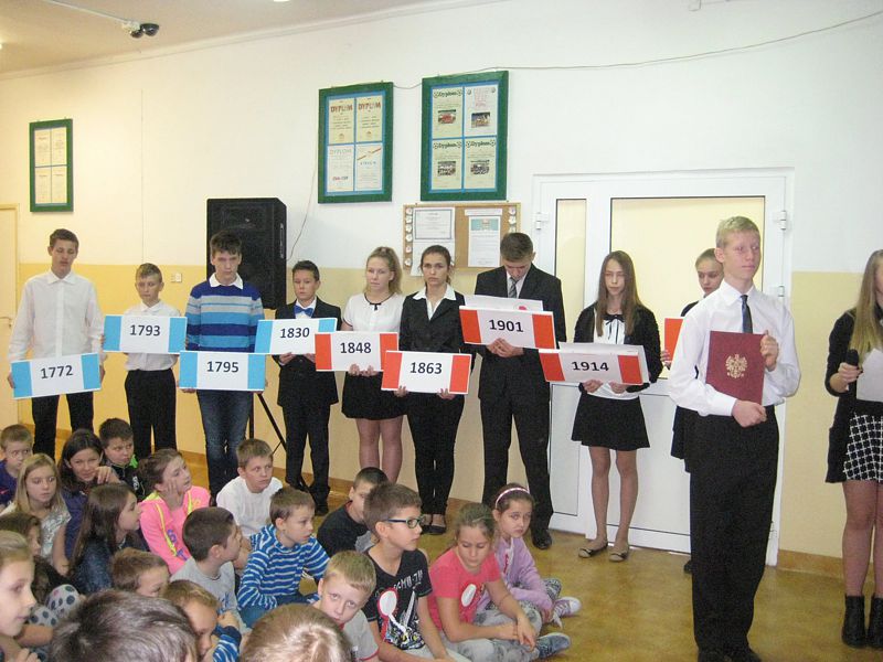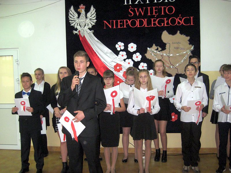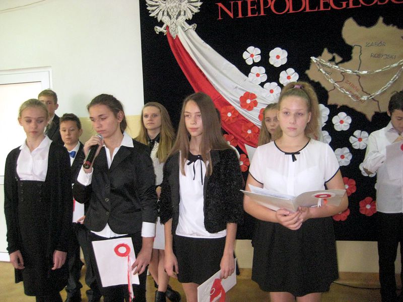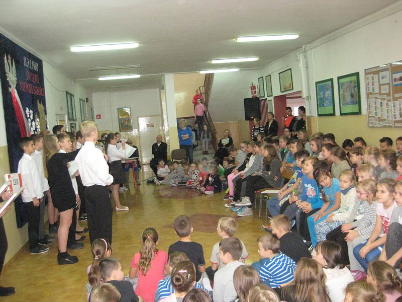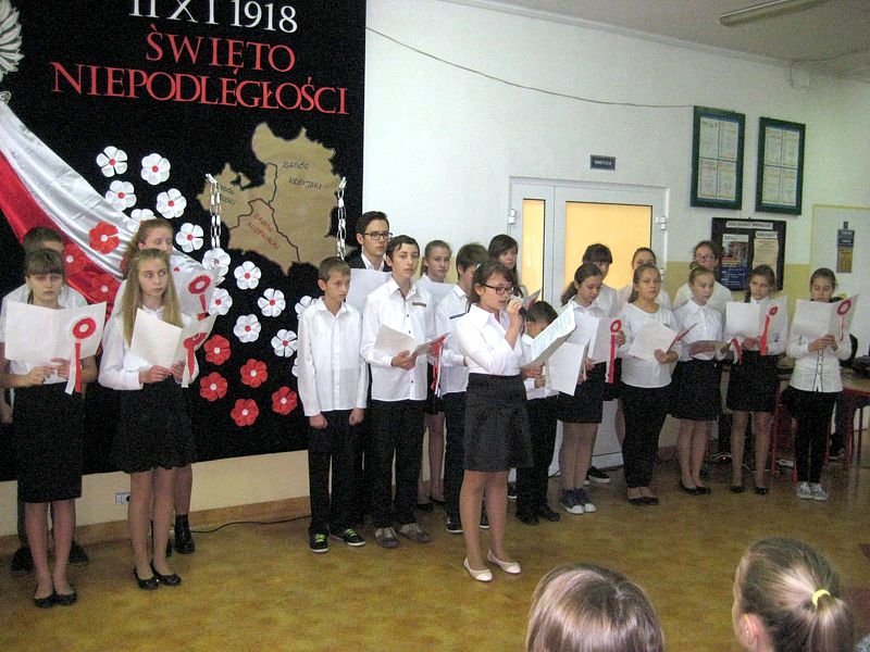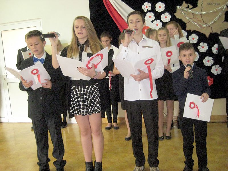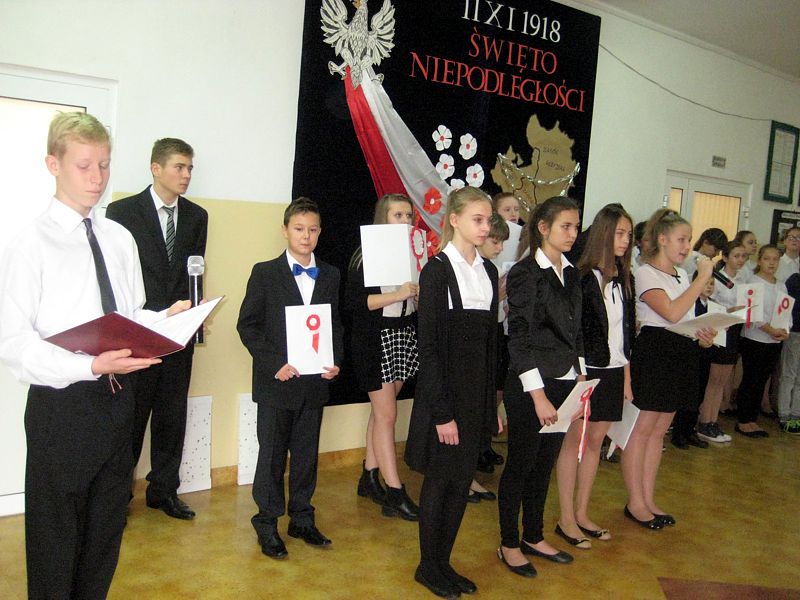 Występujący swoim strojem i wspaniałą postawą pokazali, jak uczniowie szkól noszących imiona wielkich Polaków – mjr. Henryka Dobrzańskiego „Hubala” i Jana Pawła II, mogą pokazać, że są patriotami. Apel zakończyła swoim wystąpieniem p. dyr. Danuta Krawczuk. Przypominała, jak należy zachować się podczas śpiewania hymnu narodowego i w czasie różnych uroczystości patriotycznych. Podziękowała młodzieży za wzorowe zachowanie. I a, wspierana przez chórek uczniowski ze szkoły podstawowej, stanęła na wysokości zadania.