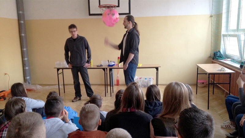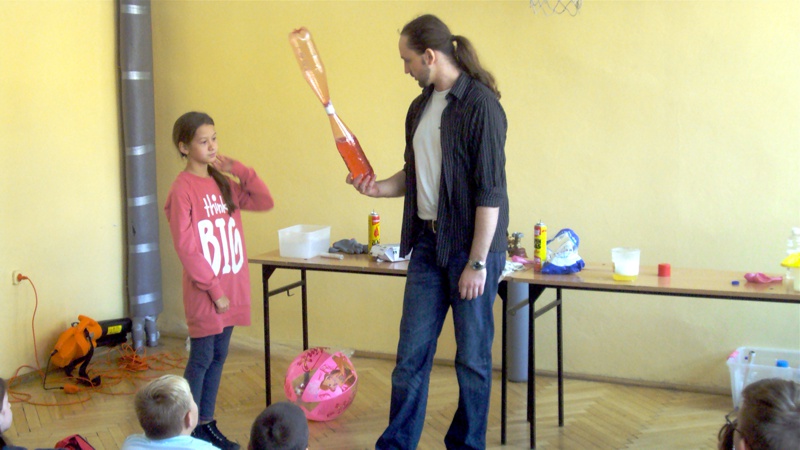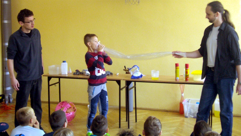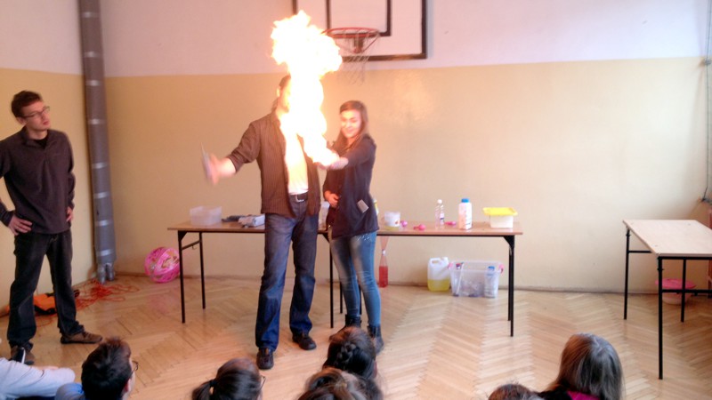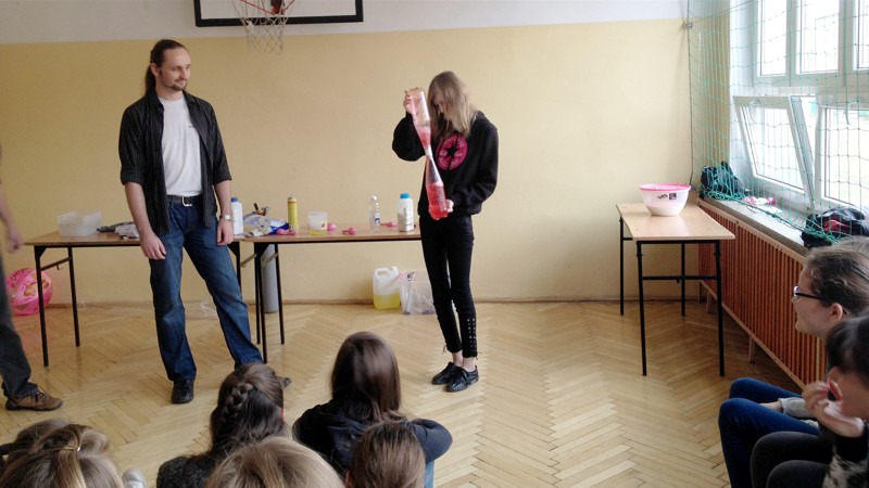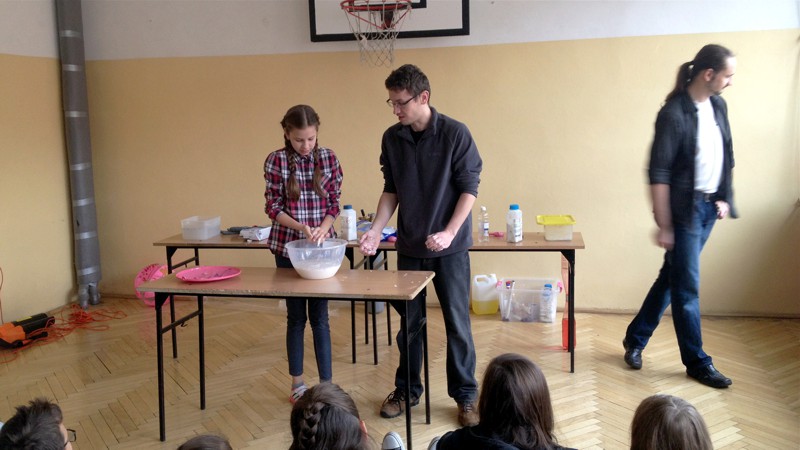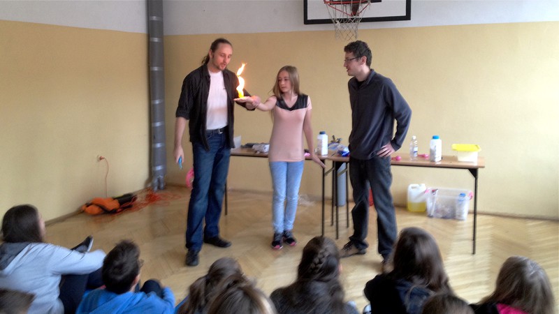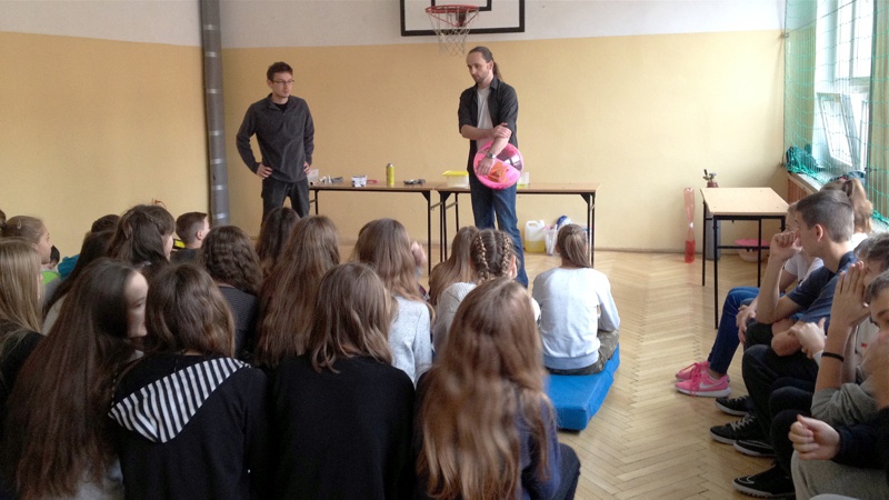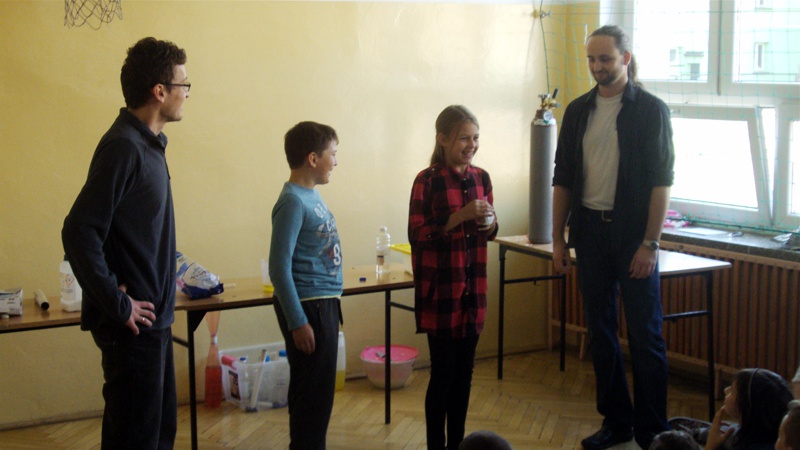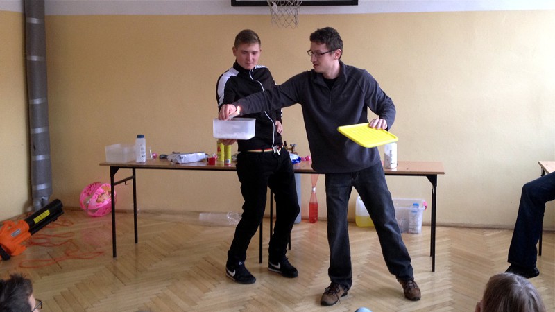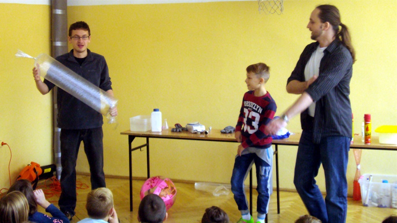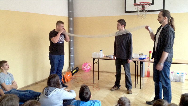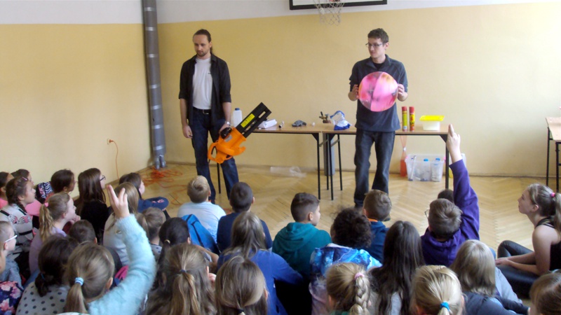 Na własnych strunach głosowych sprawdzili jak hel zmienia głos. Mogli sprawdzić właściwości cieczy nienewtonowskich oraz wytworzyć wir wody w butelce. Żywa lekcja fizyki bardzo podobała się wszystkim widzom. Podczas eksperymentów publiczność wspaniale się bawiła. Prowadzący rozbudzili wśród uczniów zainteresowanie wiedzą z zakresu fizyki i chemii. Doświadczenia dostarczyły wszystkim obecnym niezapomnianych przeżyć i emocji.