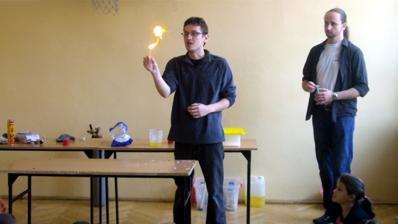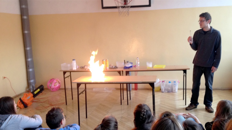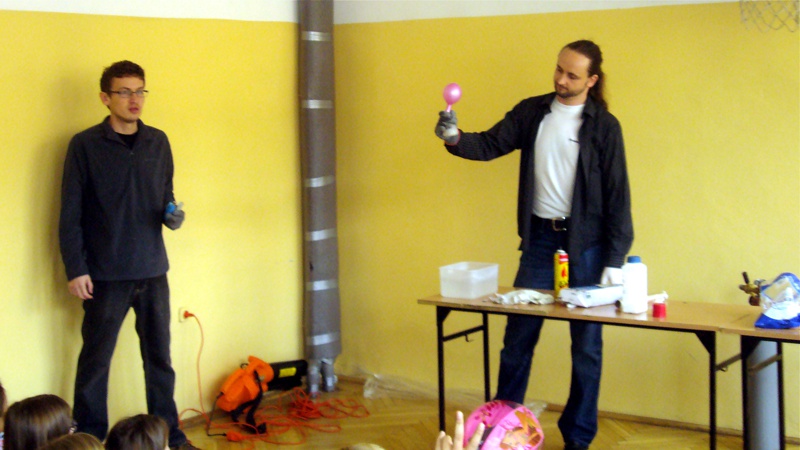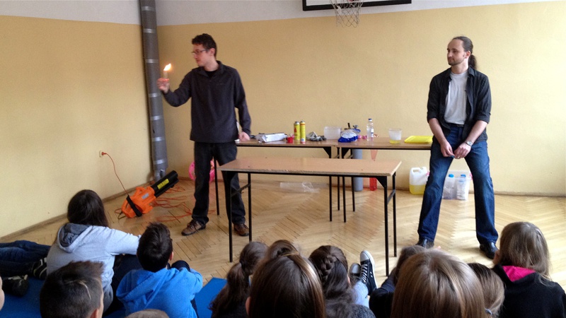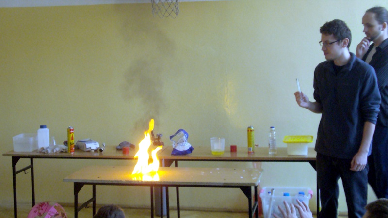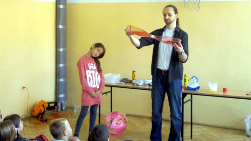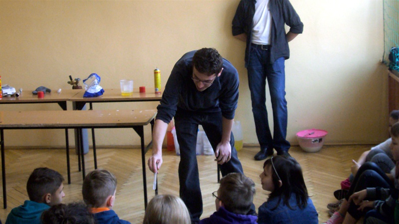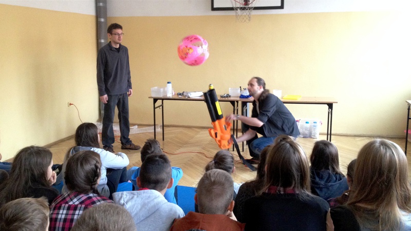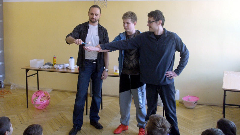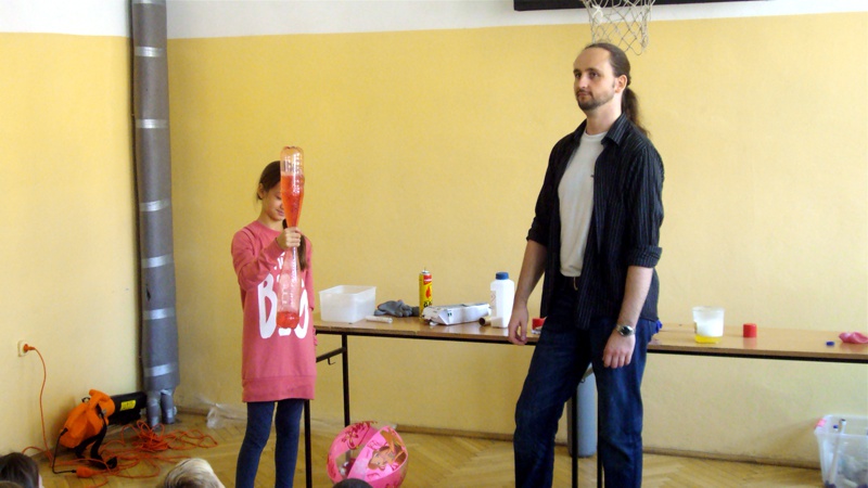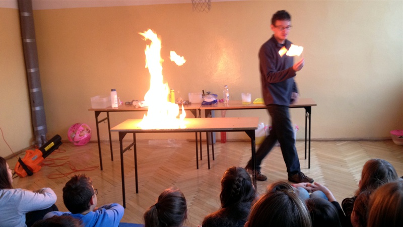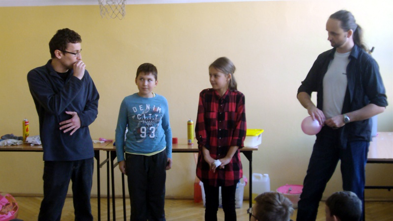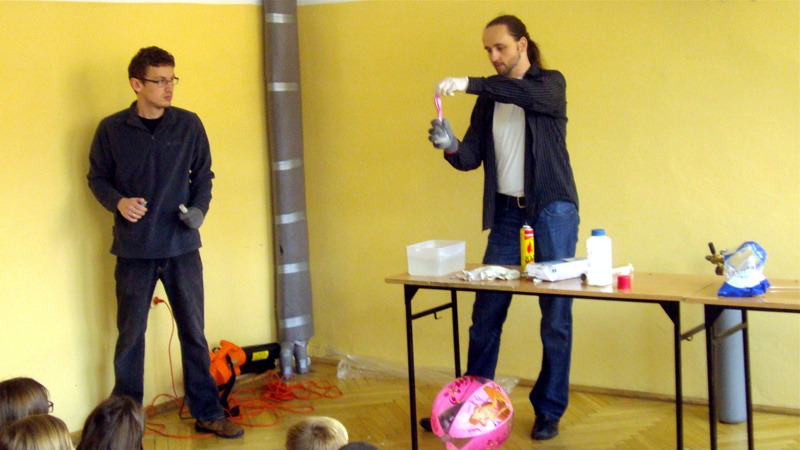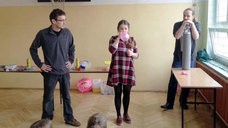 Na własnych strunach głosowych sprawdzili jak hel zmienia głos. Mogli sprawdzić właściwości cieczy nienewtonowskich oraz wytworzyć wir wody w butelce. Żywa lekcja fizyki bardzo podobała się wszystkim widzom. Podczas eksperymentów publiczność wspaniale się bawiła. Prowadzący rozbudzili wśród uczniów zainteresowanie wiedzą z zakresu fizyki i chemii. Doświadczenia dostarczyły wszystkim obecnym niezapomnianych przeżyć i emocji.