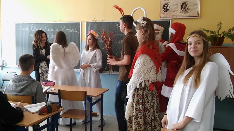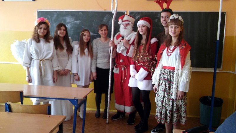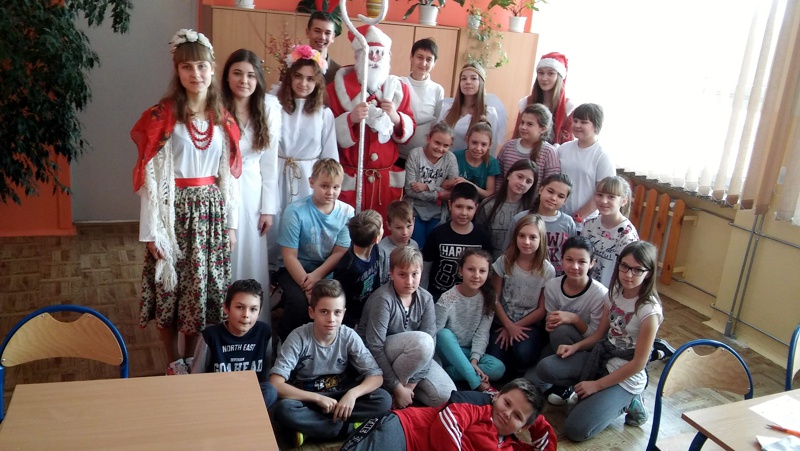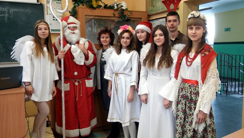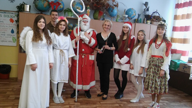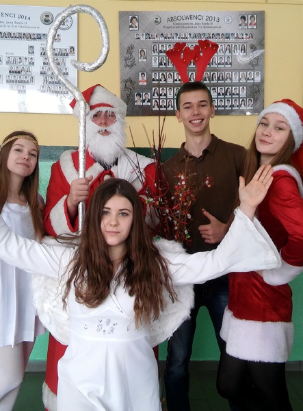 W czwartek 8 grudnia w naszym gimnazjum odbyły się długo wyczekiwane Mikołajki. Na zaproszenie Samorządu Uczniowskiego do szkoły przybył Święty Mikołaj wraz ze swoimi pomocnikami i zawitał do każdej klasy. Obdarował uczniów, nauczycieli i pracowników szkoły słodkimi upominkami, ale niestety przywiózł również...rózgi. W całej szkole panował świąteczny nastrój. Wszystkim dopisywały świetne humory.