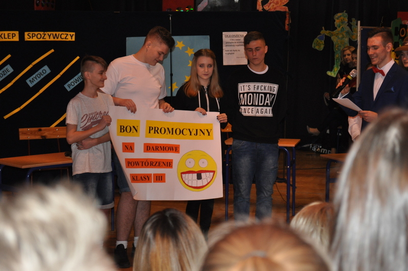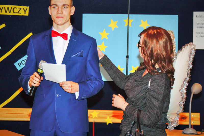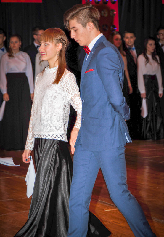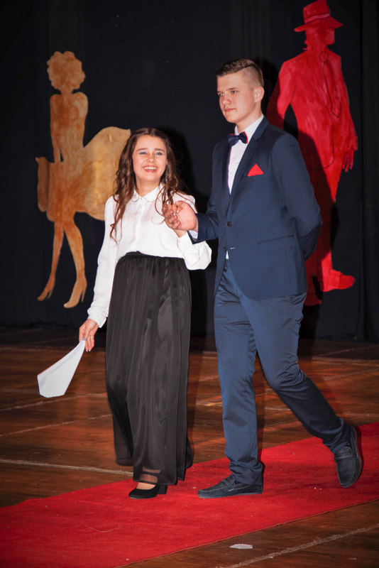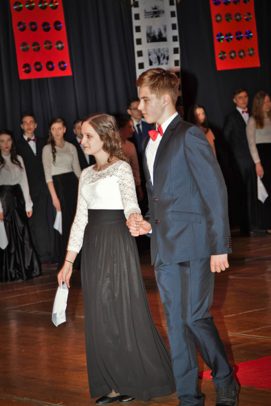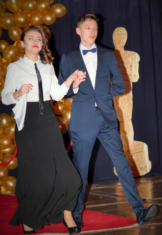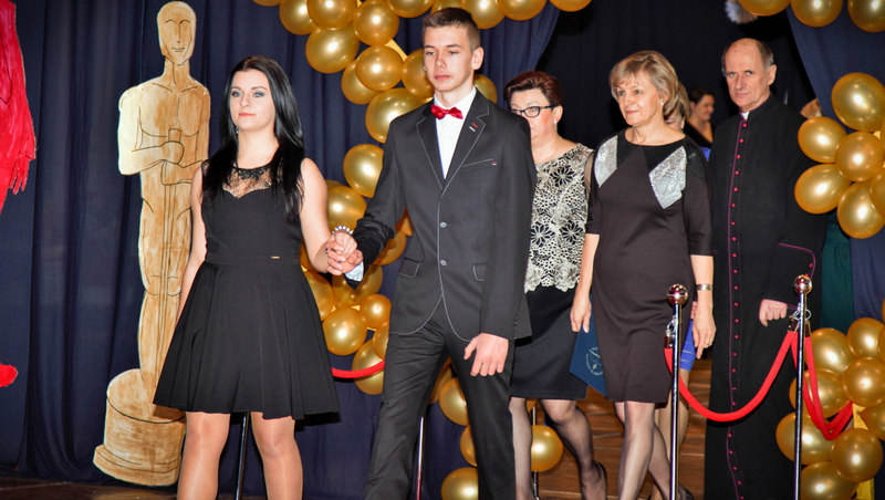 4 lutego br. sala gimnastyczna Zespołu Szkół Miejskich nr 3 wyglądała niczym Teatr Kodaka w Hollywood. Stylowa biel i czerń, eleganckie garnitury, wieczorowe fryzury, dekoracja sali – przypominały ceremonię rozdania Oscarów. Wieczór ten należał do trzech klas Gimnazjum nr 3 im. Jana Pawła II: III a (wych. Aneta Derlak), III b (wych. Marzena Jędruszczak i poprzednia wych. Lilla Mystowska, III c (wych. Daniel Lipski).