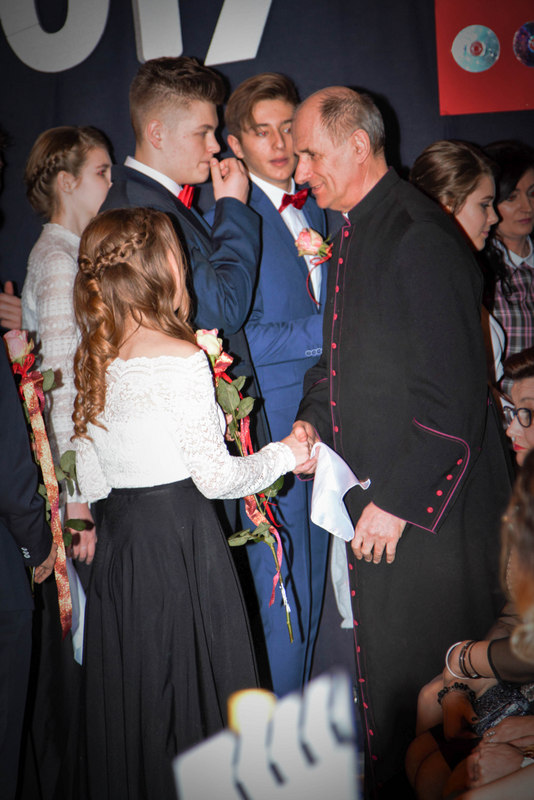 Słowa podziękowań uczniowie skierowali również do dyrekcji, rodziców i nauczycieli, którzy przygotowali ich o przeżycia pierwszego balu młodości: Pana Daniela Lipskiego za przygotowanie poloneza. Pani Iwony Stefaniak i Pani Joanny Różańskiej za naukę walca. Pani Anety Derlak, Pani Anety Franke i Pani Kamili Franke za dekorację sali w niepowtarzalnym klimacie hollywoodzkiej nocy. Pani Anety Derlak, i Pani Marzeny Jędruszczak za przygotowanie część artystycznej.