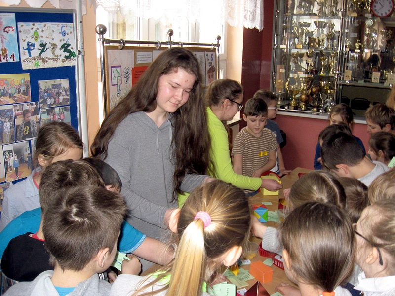 16 marca 2017 r. w naszej szkole świętowaliśmy trzeci dzień SZKOLNYCH DNI MATEMATYKI. Głównym punktem, na który od wielu dni czekali uczniowie był Międzynarodowy Konkurs Matematyczny Kangur. Chęć udziału w tym prestiżowym konkursie zgłosiło 60 osób, począwszy od klasy drugiej szkoły podstawowej po uczniów gimnazjum. Najliczniejszą grupę stanowili najmłodsi uczniowie z klas: II b, II c, III a i IV a. Po rozwiązaniu testu, każdy uczestnik otrzymał breloczek z układanką logiczną 3D. Wyniki konkursu znane będą dopiero w maju, zatem z niecierpliwością będziemy czekali, życząc wszystkim aby jak najwięcej osób otrzymało nagrody i wyróżnienia.