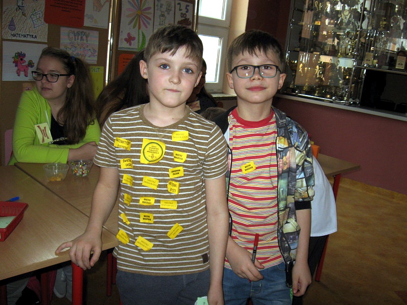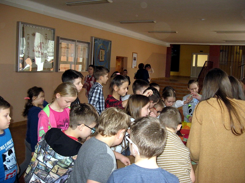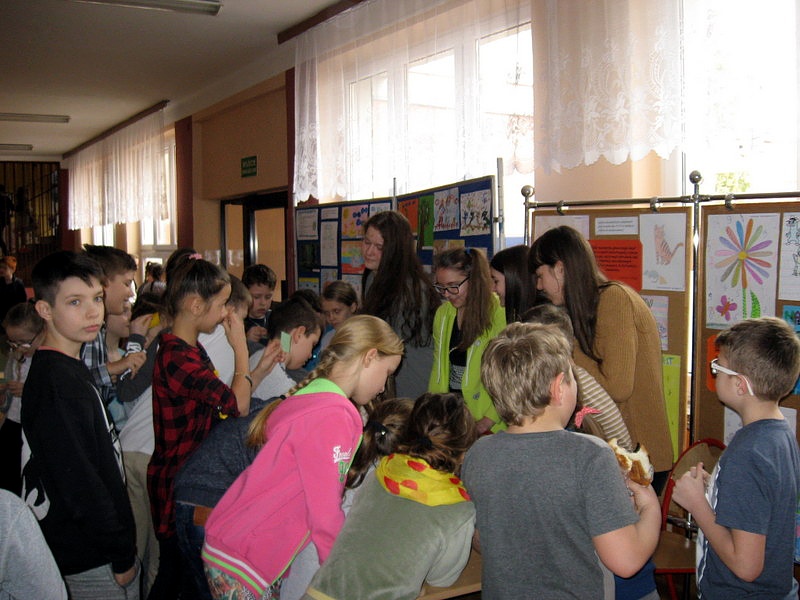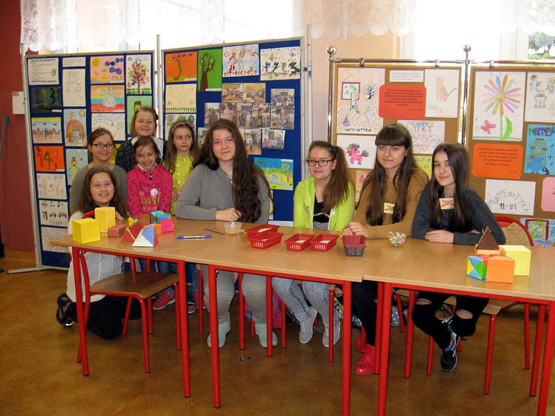 Przez cały dzień w holu szkoły działały stoiska matematyczne, gdzie najmłodsi uczniowie mogli sprawdzić swoją wiedzę z zakresu rachunków. „KONTROLERZY WIEDZY MATEMATYCZNEJ”, którymi były uczennice klasy VI a oraz I a i II b gimnazjum za poprawne odpowiedzi wręczali odznaki „mistrza dodawania”, „mistrza mnożenia”, „bystrzaka matematycznego” itp. Wielu uczniów zdobyło certyfikat eksperta tabliczki mnożenia. Do tych tytułów dołączone było słodkie „co nieco”. Stoiska cieszyły się bardzo dużym zainteresowaniem, wielu uczniów chciało sprawdzić czy zasługuje na miano MISTRZA.