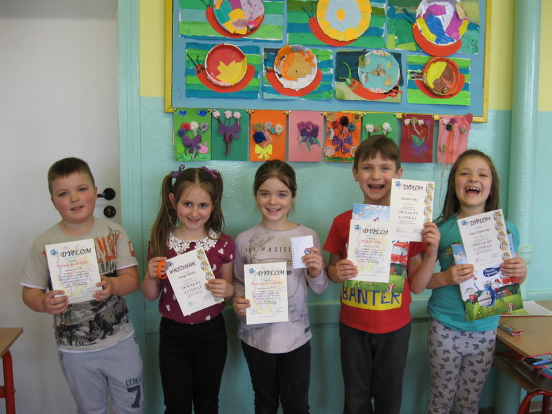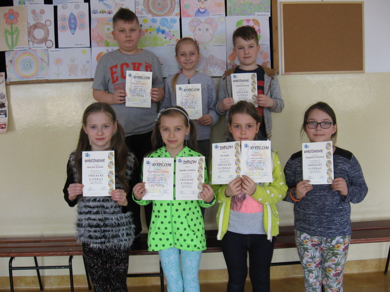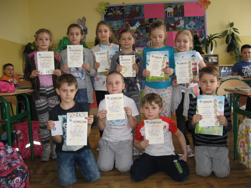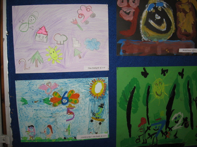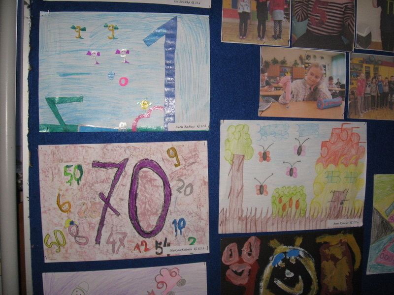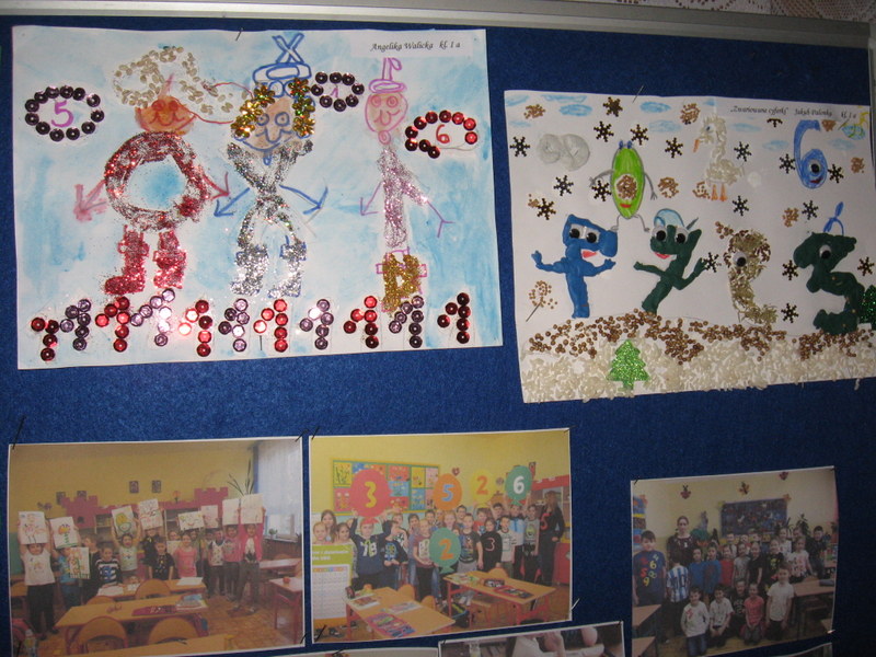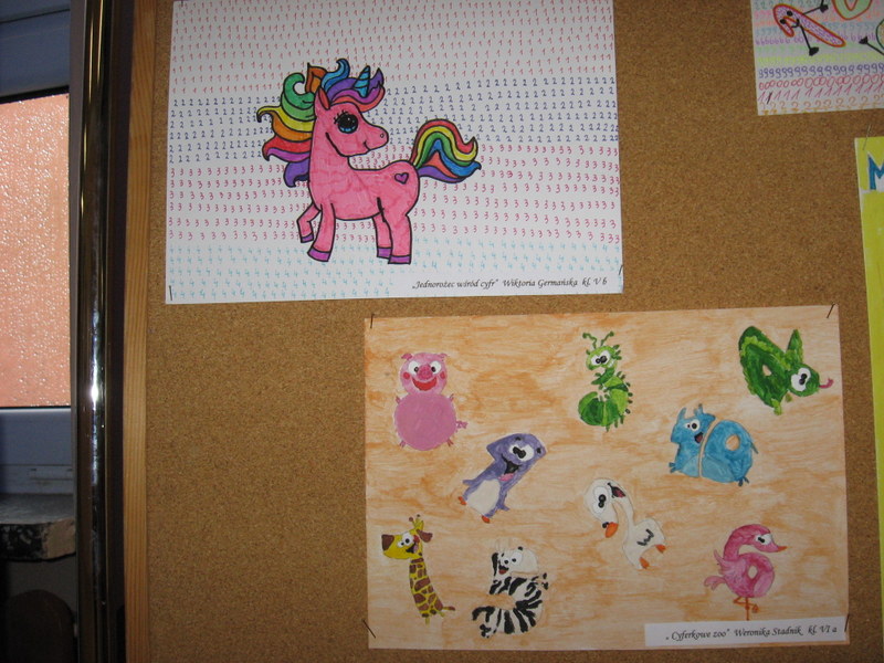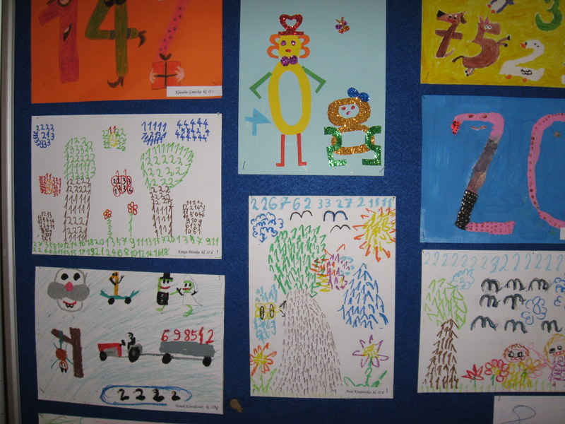 Konkurs plastyczny pt.: „Śmieszne cyferki” w klasach 0-III. Efekty pracy uczniów mogliśmy podziwiać na wystawach prezentowanych na korytarzach szkoły. Wśród uczniów młodszej grupy wiekowej wyróżniono: