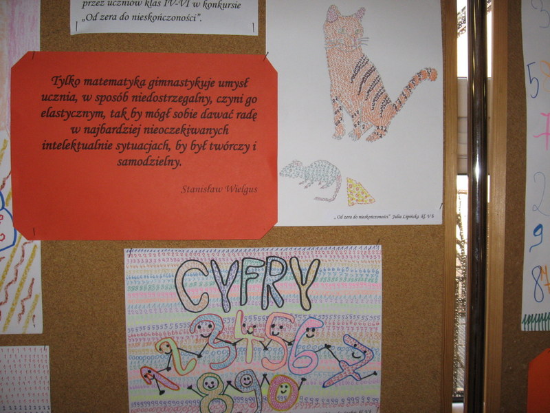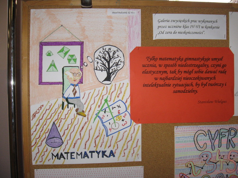 Konkurs plastyczny pt.: „Od zera do nieskończoności”. W klasach IV-VI najciekawsze prace zaprezentowali: