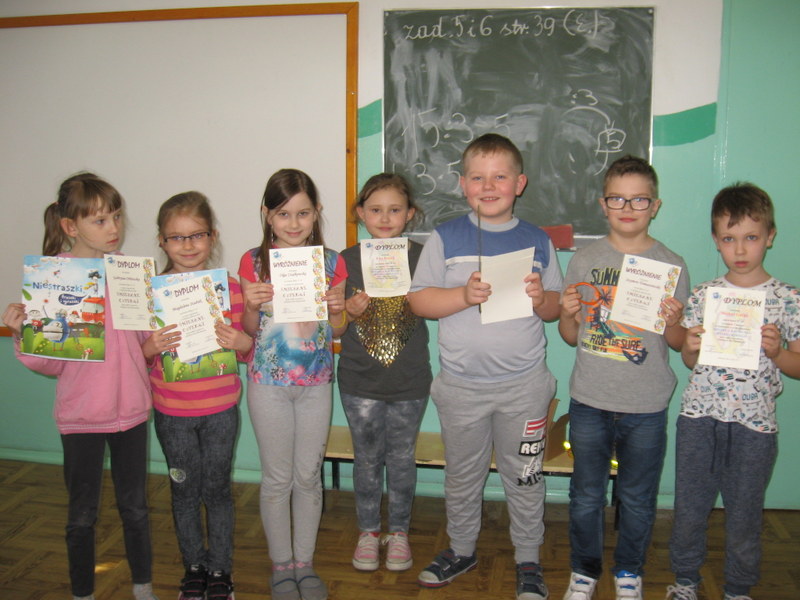 W przygotowaniach i zmaganiach matematycznych brała udział cała szkoła. Chcielibyśmy przedstawić nazwiska uczniów, którzy otrzymali nagrody i wyróżnienia w konkursach indywidualnych – jest ich naprawdę wielu.