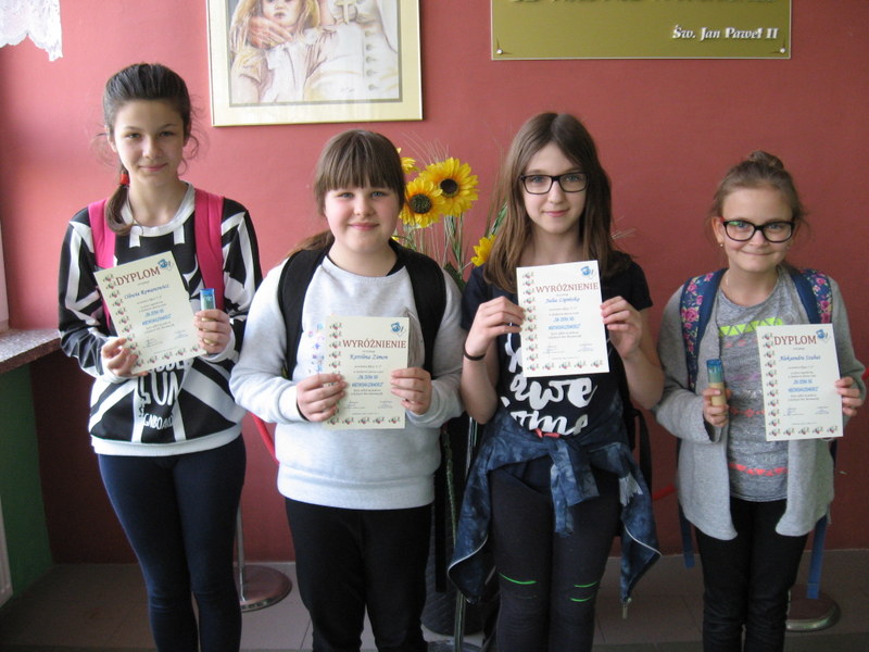 Paweł Budzyński, Wiktoria Skowrońska i Natalia Toczek, Dominika Krawiec i Julia Ciemięga z kl. VI c