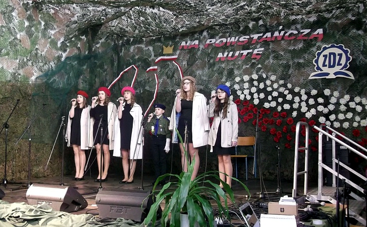 W piątek, 31 marca 2017 r. uczniowie naszej szkoły uczestniczyli w II Festiwalu Piosenki Wojskowej "Na powstańczą nutę", który organizowały Szkoły im. Jana Kilińskiego ZDZ w Zamościu. W koncercie wystąpiło ponad dwustu uczestników, którzy solo, w duetach, małych i większych zespołach wykonali ponad 50 utworów o tematyce wojskowej i patriotycznej. Naszą szkołę reprezentowały dwa podmioty. W kategorii zespoły, zespół wokalny ONI w składzie: Justyna Szlonzak, Agata Łaba, Aleksandra Kędziera, Małgorzata Pitus, Marta Markiewicz i Karol Derlak wyśpiewał II miejsce. Za wykonanie piosenki „Serce w plecaku” jurorzy konkursu wyróżnili solistkę Justynę Szlonzak z klasy III a gimnazjum. Opiekunami były panie: Aneta Franke i Aneta Derlak. Młodym artystom gratulujemy i życzymy dalszych sukcesów artystycznych.
