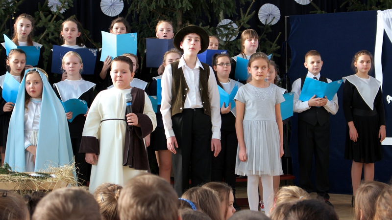 Ze Świętami Bożego Narodzenia wiąże się wiele pięknych tradycji i zwyczajów. Jednym z nich jest odgrywanie inscenizacji o Bożym Narodzeniu zwanych Jasełkami. 22 grudnia w świąteczną atmosferę wprowadzili nas uczniowie klasy II a, którzy wraz z zespołem wokalnym przedstawili sceny narodzin Jezusa Chrystusa. Był św. Józef, Maryja, Trzej Królowie, pasterze, anioły i dzieci. Inscenizacja przeplatana była pięknymi kolędami i pastorałkami.