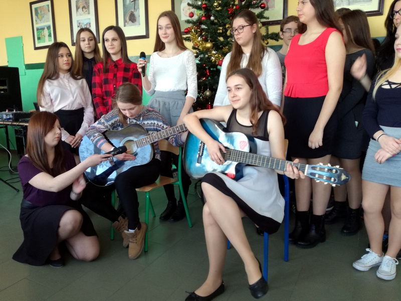 22 grudnia to bardzo wyjątkowy dzień w naszym gimnazjum. W tym ostatnim dniu przed przerwą świąteczną wszyscy uczniowie wraz ze swoimi wychowawcami spotkali się na wigiliach klasowych, by wspólnie uczcić pamiątkę Bożego Narodzenia. Roziskrzona choinka, wystroje klas, spożywanie tradycyjnych potraw i dzielenie opłatkiem wprowadziły nas w nastrój tego niezwykłego święta. Tę ciepłą atmosferę wzbogaciła 2 edycja szkolnego Show „Twoja Klasa brzmi znajomo”.