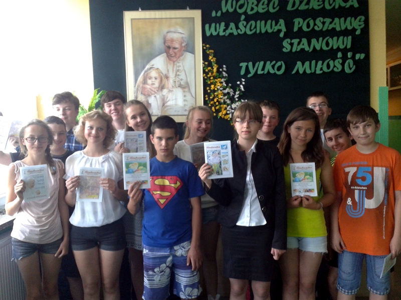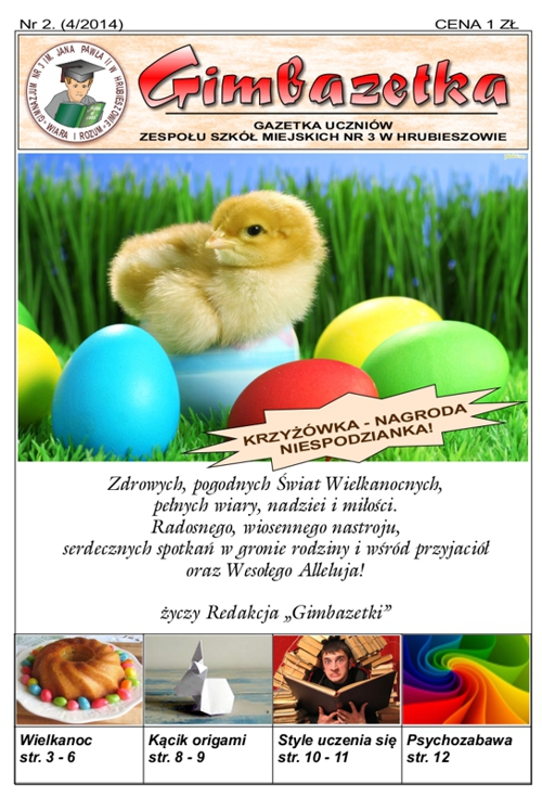 Pierwszy numer ukazał się w marcu 2014 roku przy udziale klasy I "b" i zaangażowaniu wychowawczyni p. Anity Baranowskiej. Zastanawialiśmy się jaką nadać formę gazetce, co powinno znaleźć się na jej łamach. Nad tytułem gazetki opowiedziało się prawie jednogłośnie ok. 90% grupy. Pracy nad przygotowaniem pierwszego numeru towarzyszyło duże zaangażowanie i ogromne emocje. Spotkania odbywały się w czytelni szkolnej średnio raz lub dwa razy przed opublikowaniem kolejnego numeru. Ustalono odpowiedzialnych za poszczególne działy. Ze spotkań kilkunastoosobowej grupy pozostało kilku uczniów chętnych do pracy w gazetce. Z pomocą przyszedł nam nauczyciel informatyki p. Krzysztof Łopocki, który zajmuje się składem komputerowym. Gazetka rozprowadzana jest dzięki paniom ze sklepiku szkolnego, które do każdego numeru dokładają słodką niespodziankę.