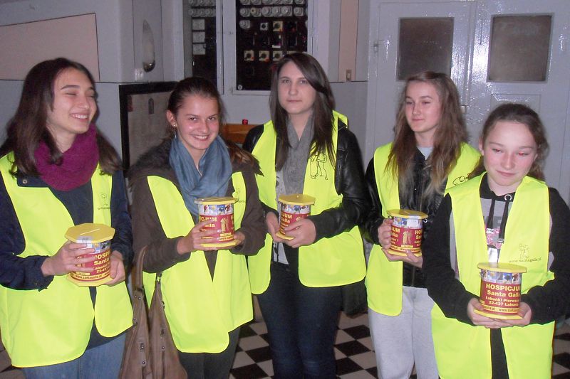 Nasze gimnazjum już od kilku lat angażuje się w pomoc dla Hospicjum Santa Galla w Łabuńkach. Placówkę prowadzą od 1997 roku zakonnicy ze Zgromadzenia Misjonarzy Krwi Chrystusa. Mieści się w zabytkowym XIX-wiecznym zespole pałacowo-parkowym. Znajduje się tam oddział stacjonarny hospicjum, z kilkunastoma łóżkami dla osób z chorobą nowotworową. Hospicjum Santa Galla opiekuje się chorymi bezpłatnie, zarówno na oddziale stacjonarnym, jak i w domu chorego. Systematycznie bierzemy udział w sprzedaży m.in. zeszytów, kalendarzy, zakreślaczy. Zbieramy nakrętki, organizujemy w szkole zbiórkę środków opatrunkowych, które zawozimy do hospicjum. Bierzemy udział w kwestach. Zebrane podczas tych akcji pieniądze przeznaczone są na zakup leków, materiałów opatrunkowych, pampersów oraz środków czystości dla chorych pacjentów.