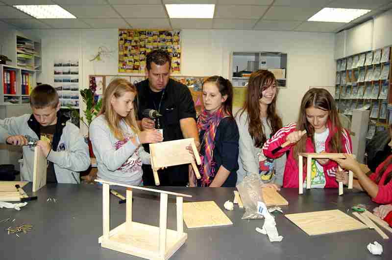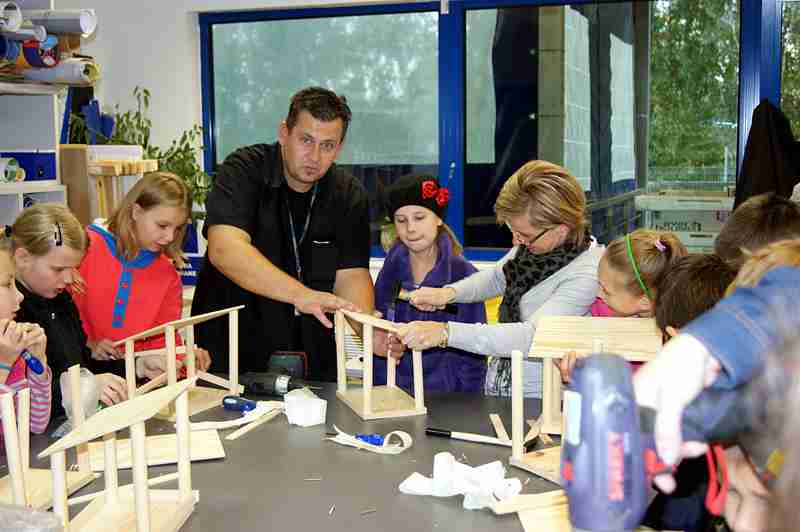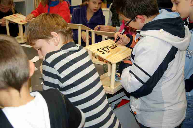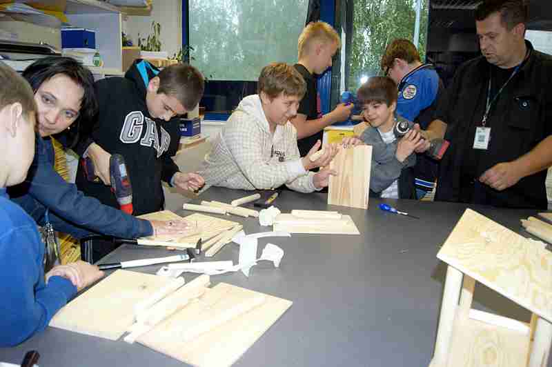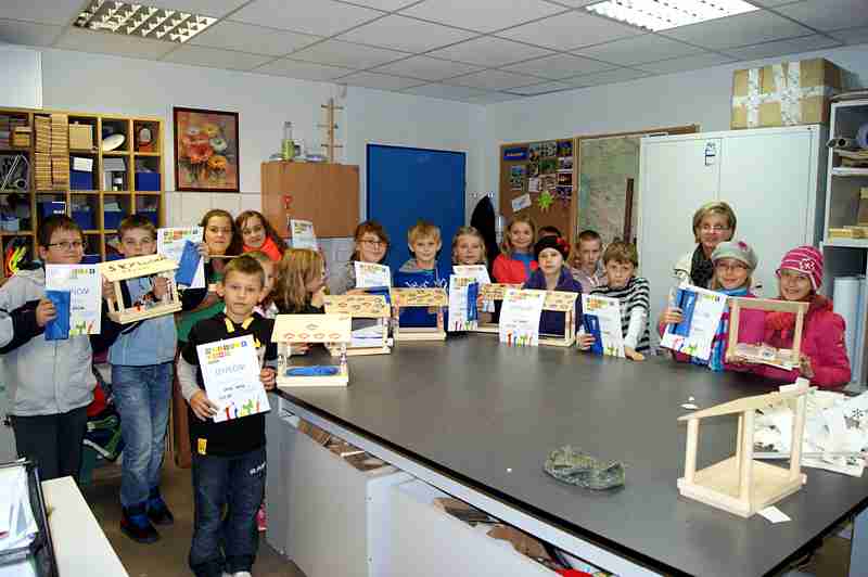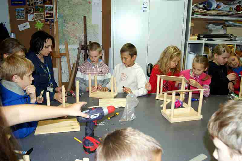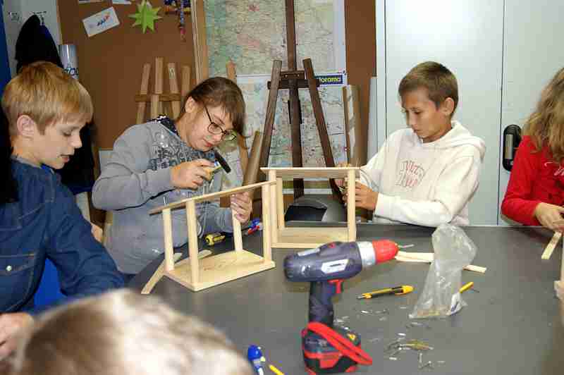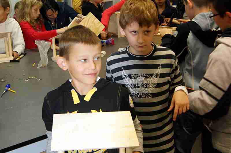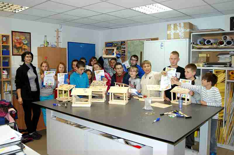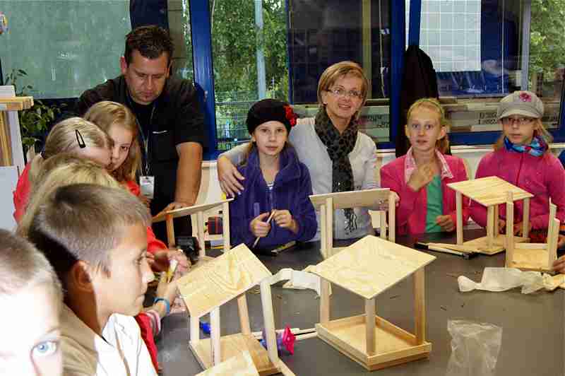 Dnia 26 września uczniowie klasy IV b i VI c pod opieką p. Doroty Witkowskiej, p.Justyny Marcych i ks. Pawła Kubiszyna wyruszyli na warsztaty organizowane przez sklep Castorama w Zamościu „Majsterkowo”. Zajęcia, na których dzieci samodzielnie wykonywały karmniki dla ptaków prowadzone były pod okiem specjalistów. Pomimo, że uczniowie wykonywali karmniki z tych samych materiałów to każdy był inny. Pięknie ozdobione karmniki na pewno przyciągną zimą zgłodniałe ptaki.