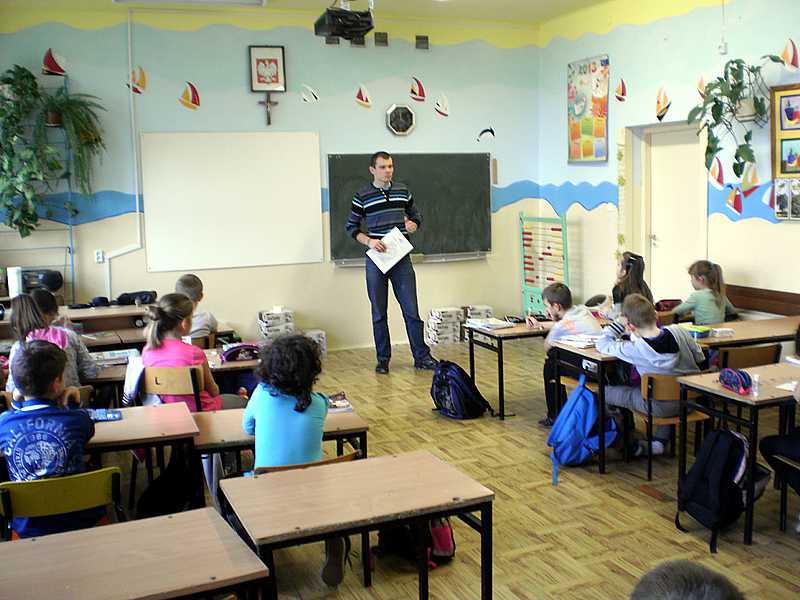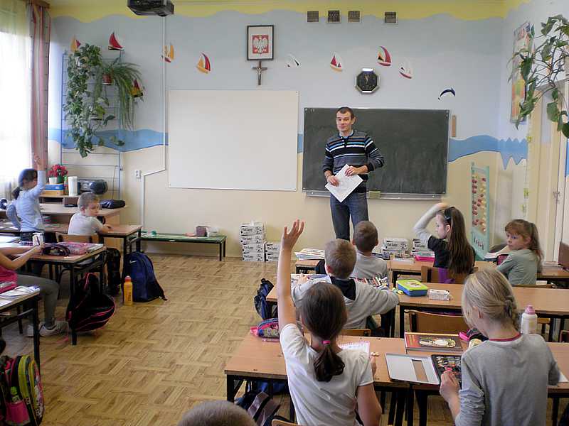 9 października 2013r w szkole gościliśmy pana Krzysztofa Ziąbkę z Warszawy – pracującego od 6 lat w służbie zdrowia, jako pracownik pomocniczy: opiekun medyczny i masażysta. Pan Krzysztof spotkał się z uczniami klas Ia i IIb Gimnazjum i klasy 3b Szkoły Podstawowej. W swoich wypowiedziach uwrażliwiał uczniów na utrzymywanie prawidłowej postawy ciała podczas nauki i wypoczynku. Opisowo wyjaśniał zależności pomiędzy mięśniami i układem kostnym. Kładł nacisk na profilaktykę, czyli aktywność fizyczną, szczególnie pływanie, chodzenie i systematyczne ćwiczenia fizyczne.