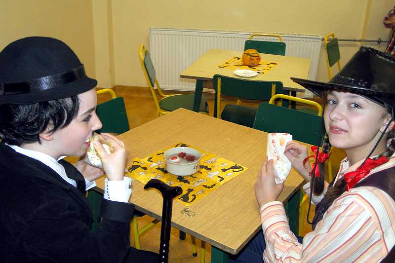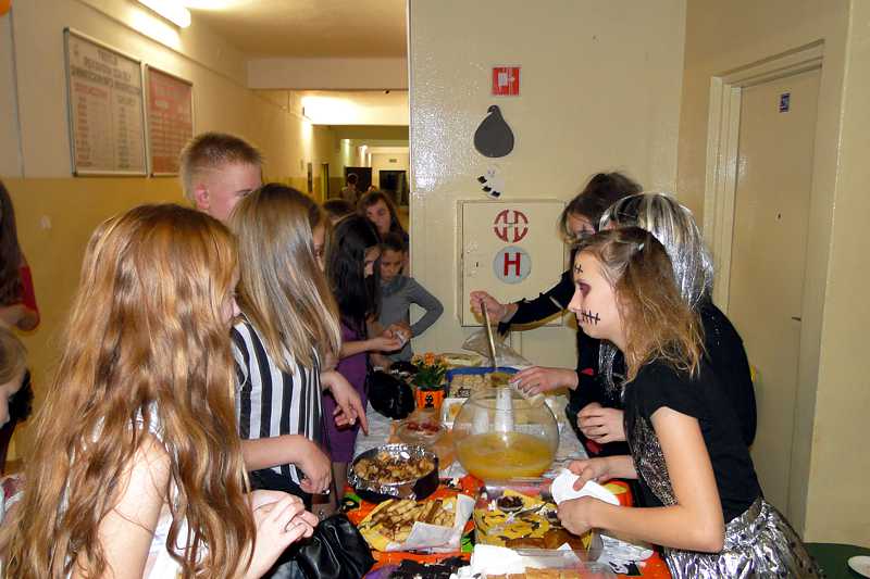 O słodką oprawę zabawy zadbali uczniowie naszej szkoły, przygotowując liczne Halloweenowe przysmaki. Tego dnia nasza szkoła wyglądała jak „straszny dwór”, ale najważniejsze było to, że wokół panowała ekscytacja, podniecenie, dreszczyk emocji, ale było również wiele śmiechu i radości. Wszyscy spędzili czas w miłej atmosferze mając nadzieję, że za rok znów spotkają się, aby uczestniczyć w tak fantastycznym wydarzeniu.