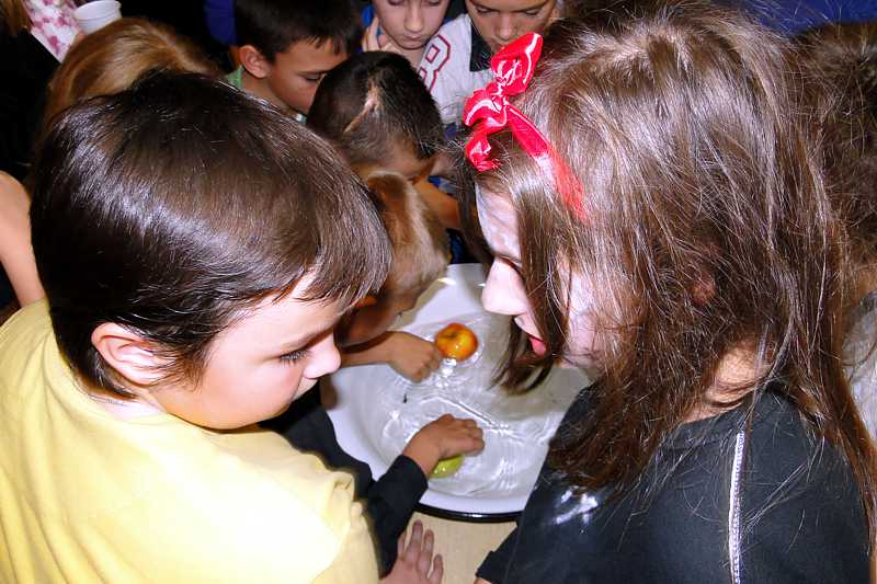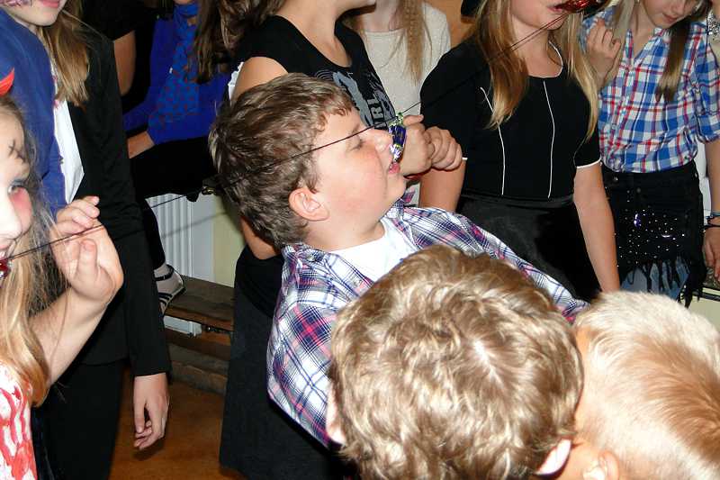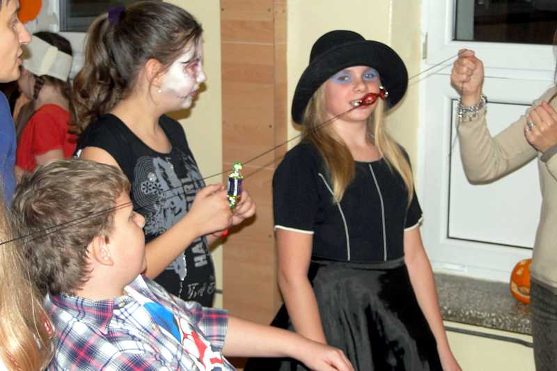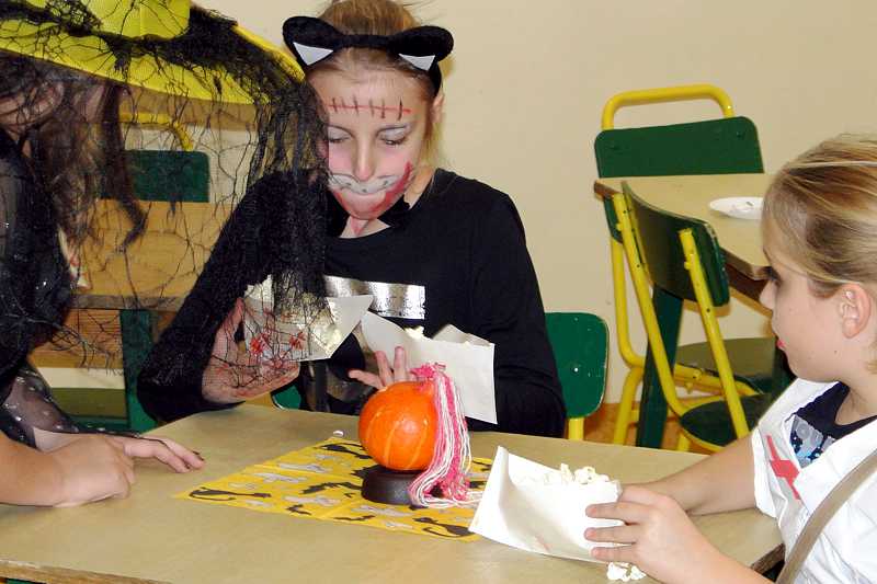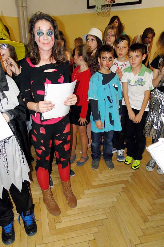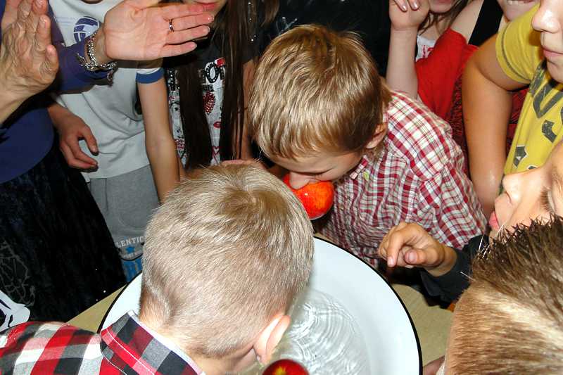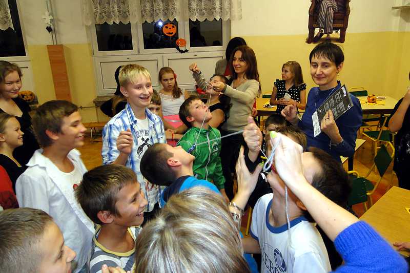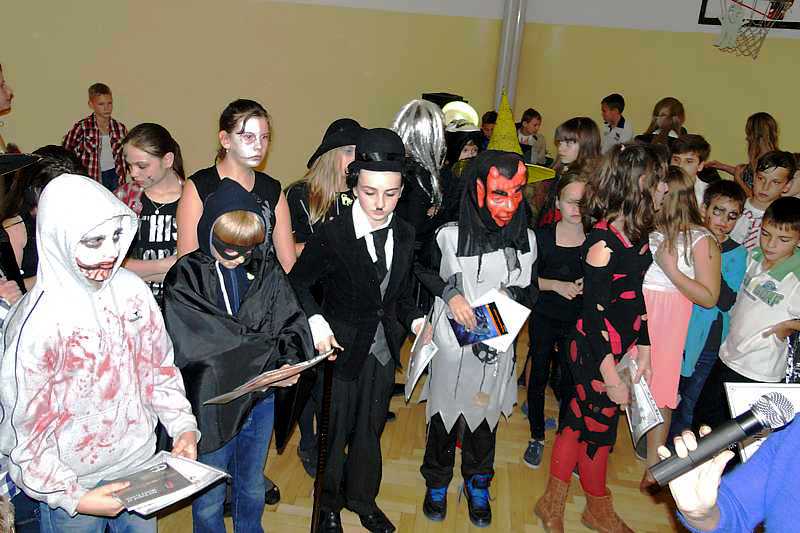 Pląsom i zabawom nie było końca. Dużo emocji wywołały też konkursy, podczas których dzieci musiały wykazać się pomysłowością i zręcznością. Jak zwykle "bobbing for apples" i wyścig na miotłach cieszył się dużym zainteresowaniem.