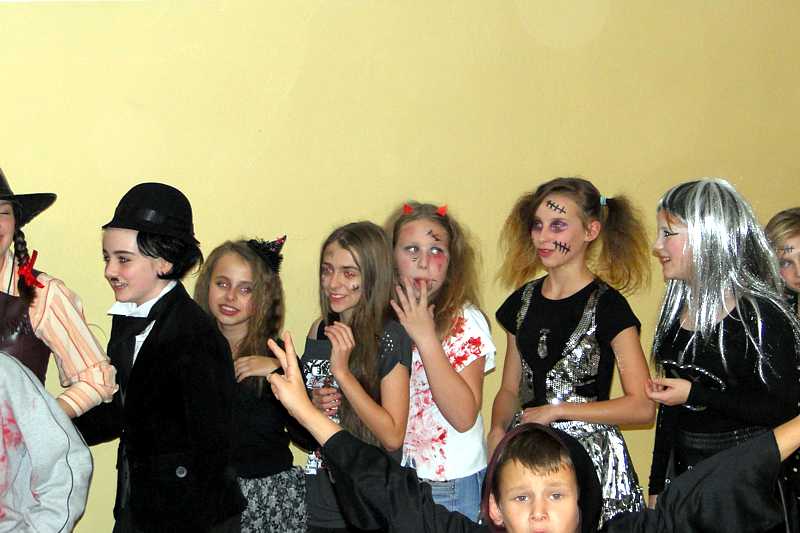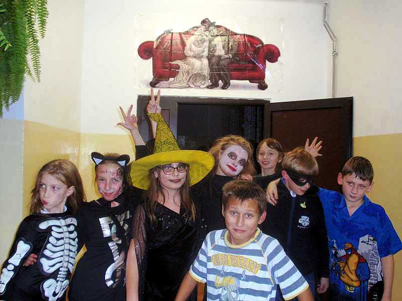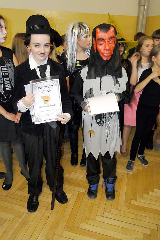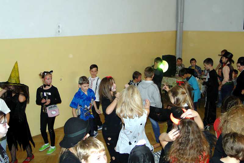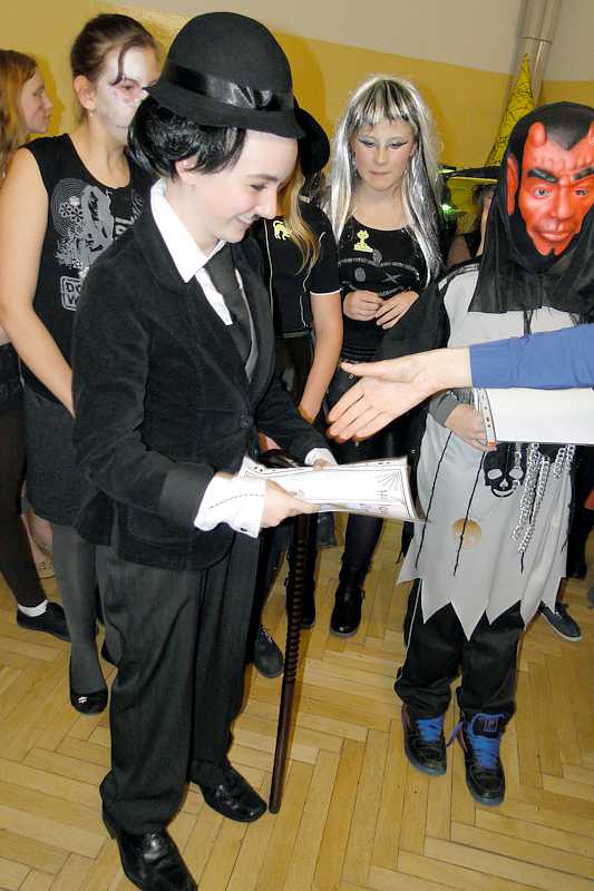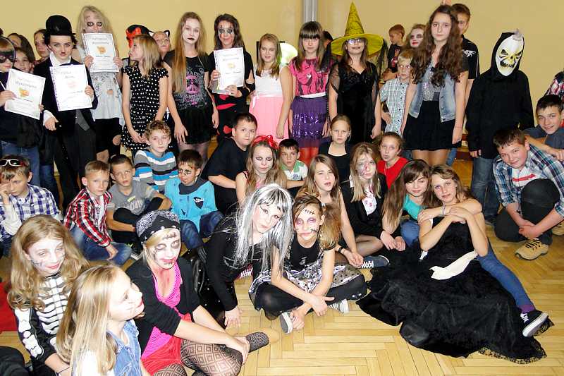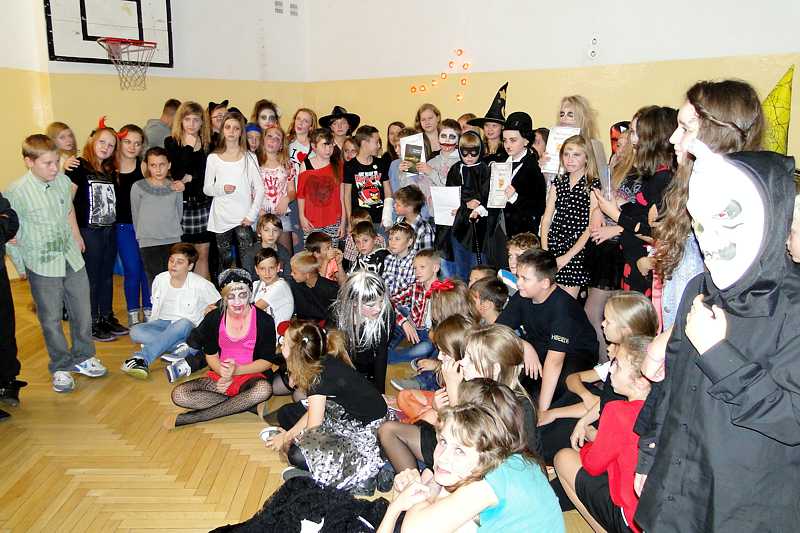 W naszej szkole 4.11.2013r. z inicjatywy Szkolnego Klubu Europejskiego odbył się bal przebierańców - Halloween. Na wspólną zabawę przybyły czarownice, koty, pająki, mumie i duchy oraz inne osobliwe postacie. A trzeba przyznać, że pomysłów na straszne stroje nasza młodzież miała bez liku.
