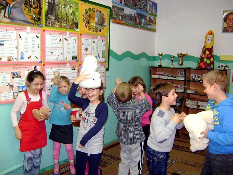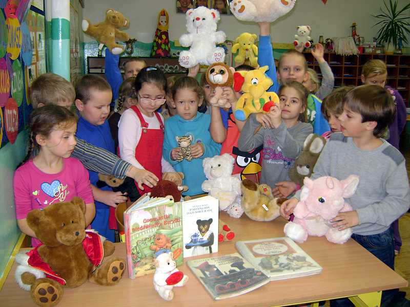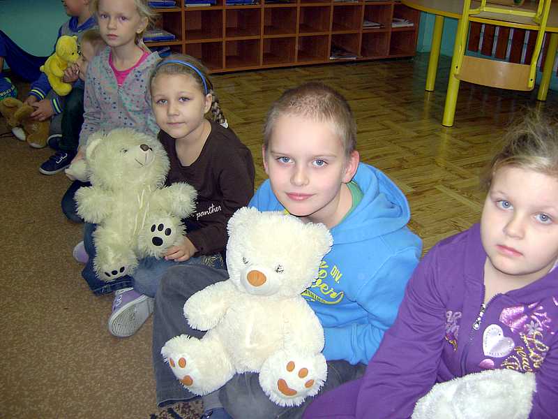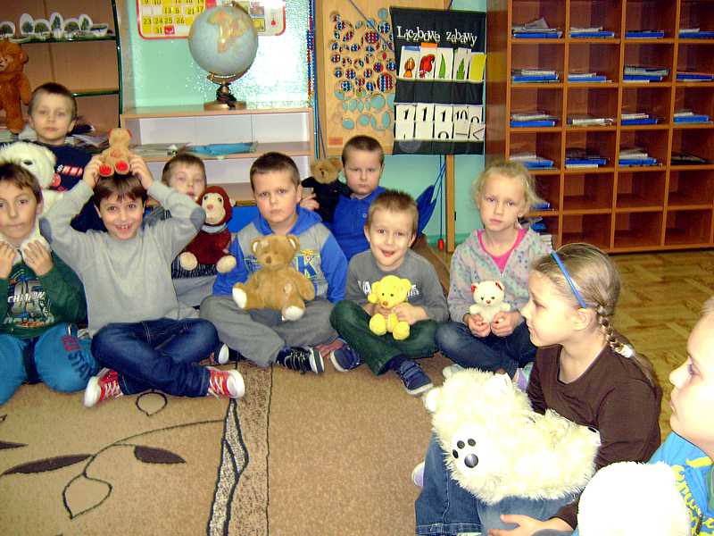 Dnia 25 listopada sala kl. I „b” zamieniła się w Misiolandię. Dzieci przyniosły na tę okazję swoje ulubione misie. Wśród pluszaków były małe i duże maskotki. Podczas zajęć dzieci opowiadały o swoich misiach, wysłuchały pięknej, aczkolwiek smutnej „misiowej” bajeczki. Poznały też historię pluszowej zabawki i przypomniały sobie postacie ważnych i znanych misiów, bohaterów książek i filmów. Rozpoznawały portrety Kubusia Puchatka, Misia Uszatka, Gumisiów, misia Paddingtona, Yogi, Colargola. Dużo radości sprawiło wszystkim rysowanie misia z zamkniętymi oczami i „Portretu misia” . Poszczególne konkurencje przeplatane były zabawami ruchowymi i piosenkami o misiach.