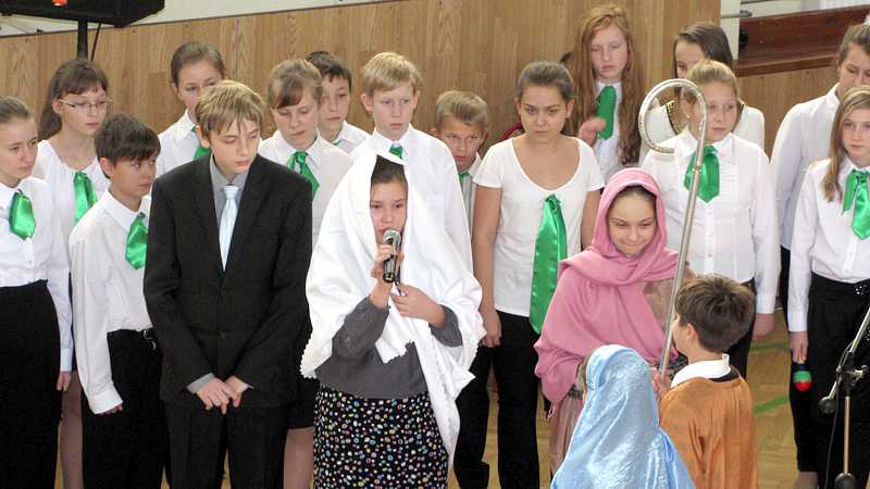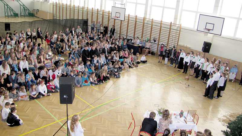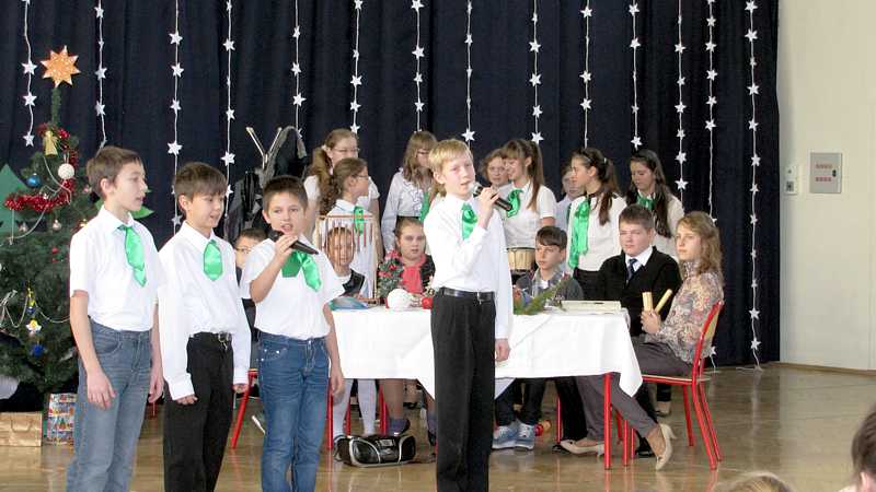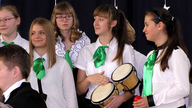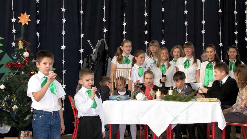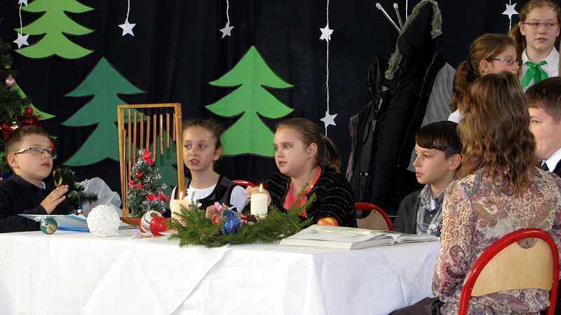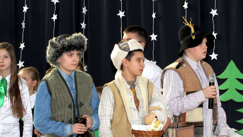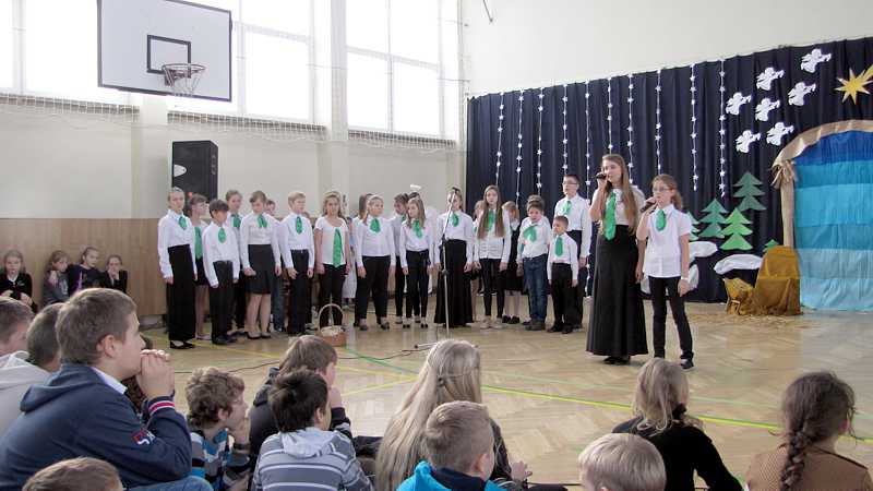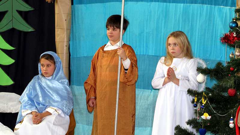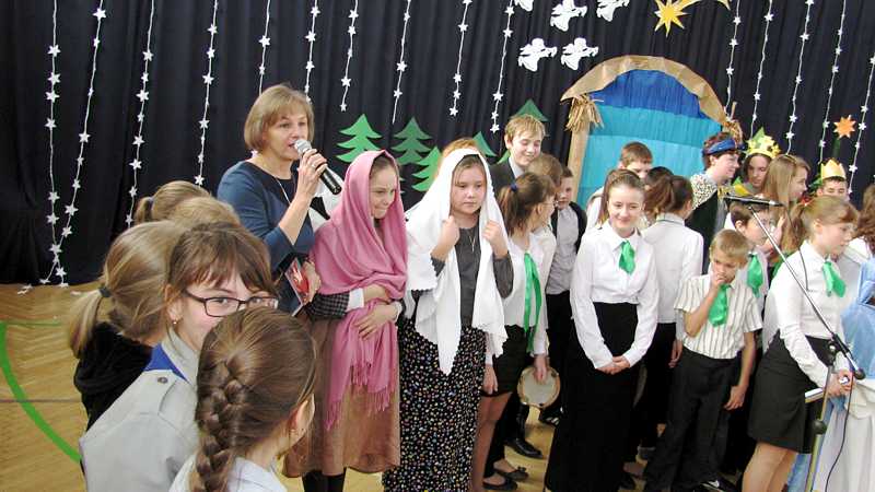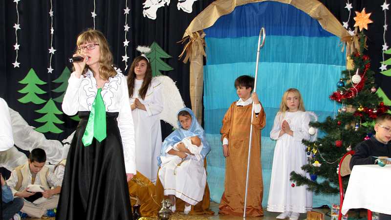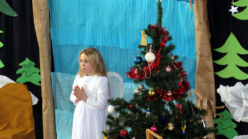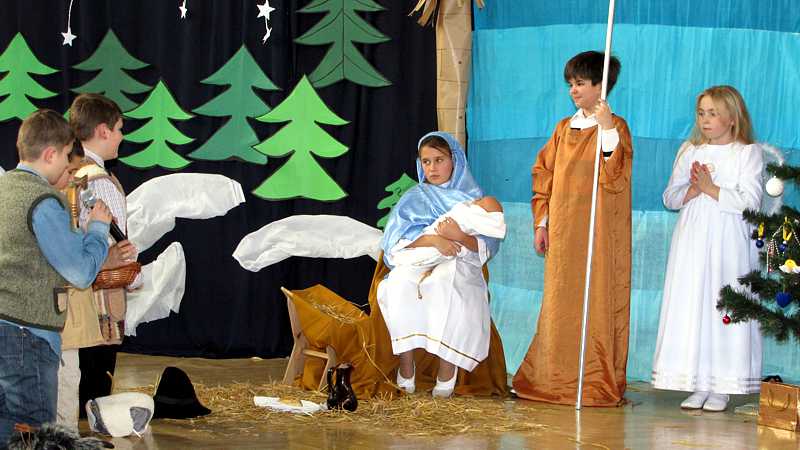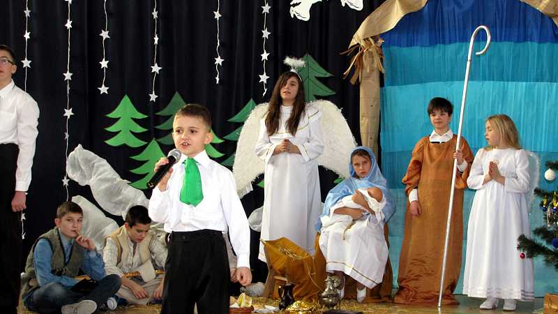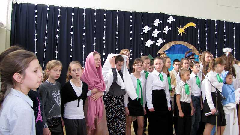Całość przedstawienia pokazującego i przypominającego przepiękne tradycje Świąt Bożego Narodzenia przeplatana była kolędami i pastorałkami we współczesnej interpretacji. Publiczność mogła też po raz kolejny przeżyć historię Marii i Józefa szukających miejsca do schronienia na noc, którzy po bezowocnych poszukiwaniach zdecydowali się przenocować w stajni. I to do nich i małego Jezuska przybyli tak honorowi goście jak trzej mędrcy i złożyli dzieciątku pokłon. „Jasełka” wraz z uczniami przygotowały pani Małgorzata Koniec i siostra Bożena Brandenburg, które również wykonały dekorację . Współpracowała z nimi także pani Alicja Strójwąs – Mojsym. Oprawę muzyczną zapewnił chór szkolny pod kierunkiem pani Anety Franke. Po przedstawieniu Pani Dyrektor podziękowała wszystkim „aktorom” i nauczycielom , którzy przyczynili się do wzbogacenia szkolnej Wigilii, a następnie złożyła wszystkim obecnym świąteczne życzenia i zaprosiła Pracowników szkoły na spotkanie opłatkowe. Jasełka pozwoliły poczuć rodzinną atmosferę zbliżających się Świąt Bożego Narodzenia i rozpocząć wspólne świętowanie narodzin Zbawiciela.