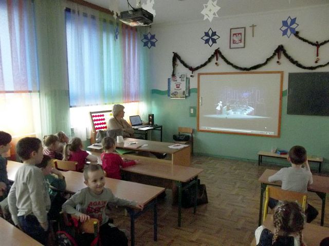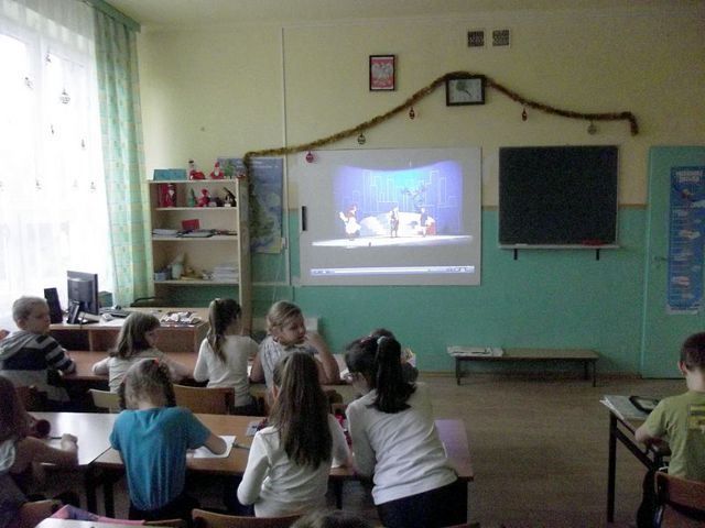Dnia 16.01.2014 r. 180 uczniów kl. 0 – III kolejny raz wzięli udział w „Internetowym Teatrze TVP dla szkół”. Tym razem obejrzały spektakl pt.: „Momo”. Jest to opowieść, która dotyka jednego z najważniejszych problemów współczesności – braku czasu. Zapracowani i zajęci swoimi sprawami rodzice rekompensują dzieciom brak rodzinnego ciepła dostatnim życiem.