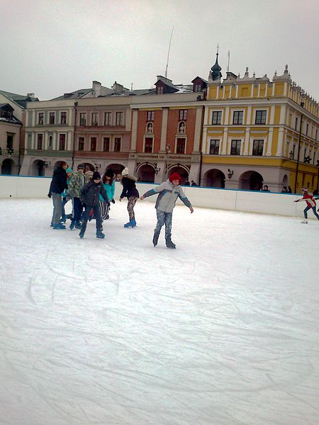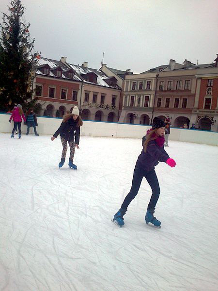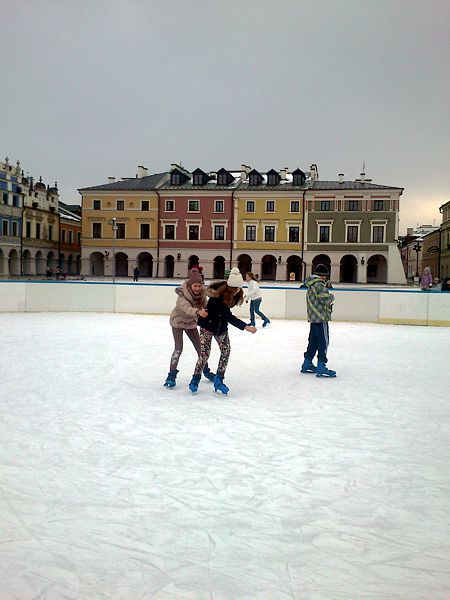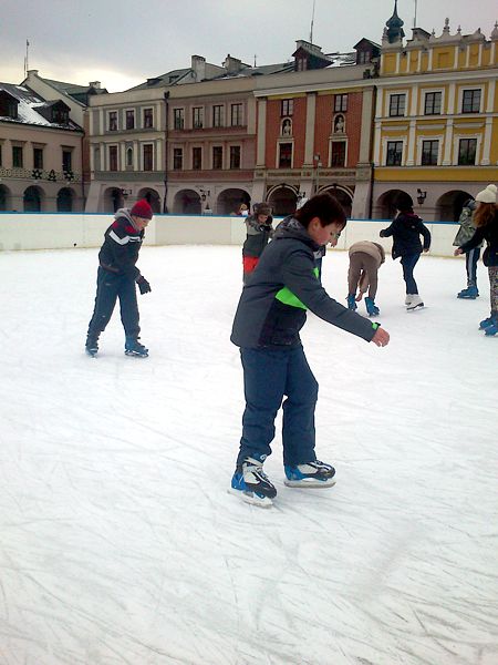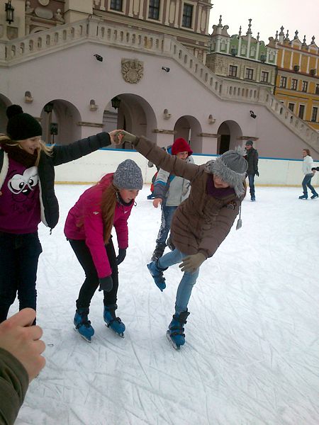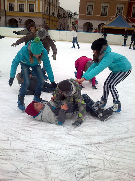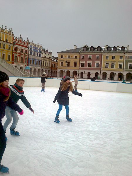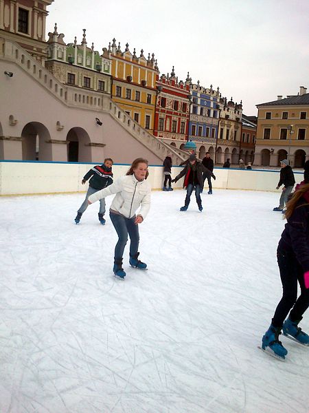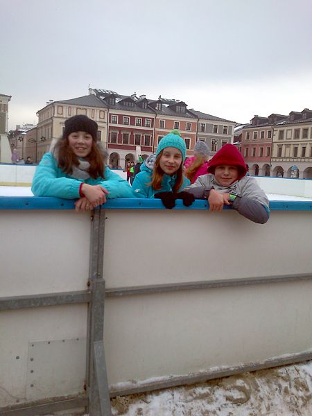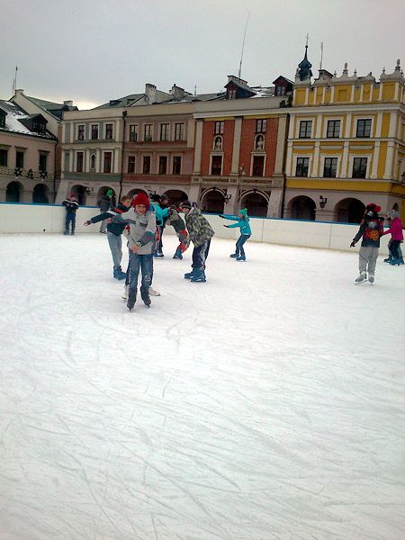 Klasa VI a wraz z nauczycielami wychowania fizycznego - p. Joanną Różańską i p. Tomaszem Szlonzakiem - wybrała się na wycieczkę do Zamościa. Na początku kroki swe skierowała na Krytą Pływalnię, gdzie, jak zwykle, czekało na spragnionych wody mnóstwo atrakcji. To one sprawiły, że uczniowie całkowicie zapomnieli o szkolnych obowiązkach i poczuli smak morskiej przygody. Kolejnym punktem programu wycieczki były zabawy na lodowisku. W pięknej scenerii zamojskiego rynku tylko nieliczni zaliczyli upadek. Wszyscy za to pozowali do zdjęć, robiąc przy tym piruety, obroty, świadczące o drzemiących w młodych łyżwiarzach talentach i pokładach niespożytej energii.