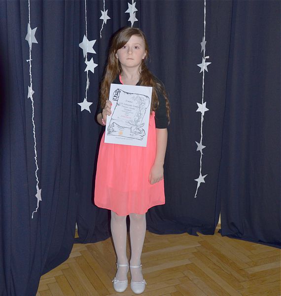 W Młodzieżowym Domu Kultury w Stargardzie Szczecińskim odbyło się rozstrzygnięcie XIII Ogólnopolskiego Konkursu Twórczości Literackiej ,,Kominkalia”. Do konkursu nadesłano prace w dwóch kategoriach literackich: proza i poezja oraz w trzech kategoriach wiekowych. Na konkurs napłynęły prace z całej Polski. Jurorzy przyznali nagrody i wyróżnienia. W kategorii poezja z najmłodszej grupy wiekowej laureatką została Malwina Kryszczuk, zajęła II miejsce. Z kolei w Wałbrzyskim Ośrodku Kultury podsumowano Ogólnopolski Konkurs Plastyczny "Cztery pory roku – zima w parku”. Spośród 250 prac wykonanych w różnych technikach plastycznych komisja doceniła rysunek Roksany Więsyk. Została laureatką i zdobyła II miejsce w kategorii klas I – III.