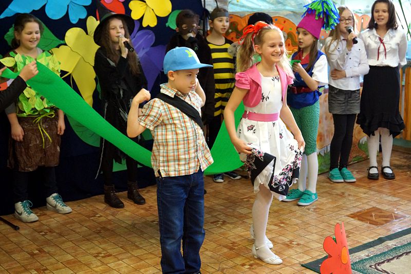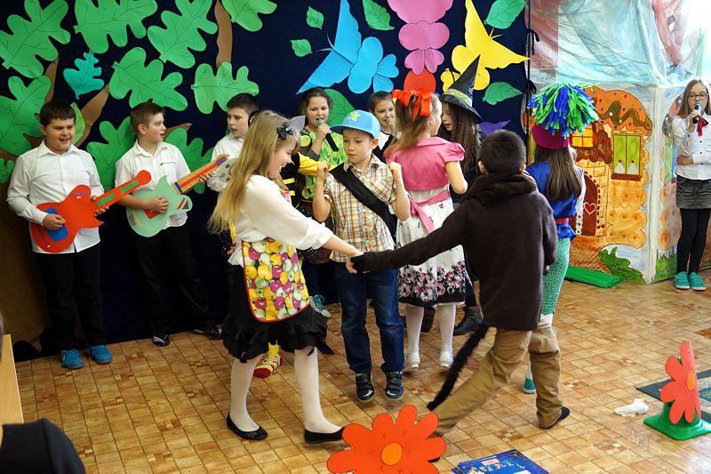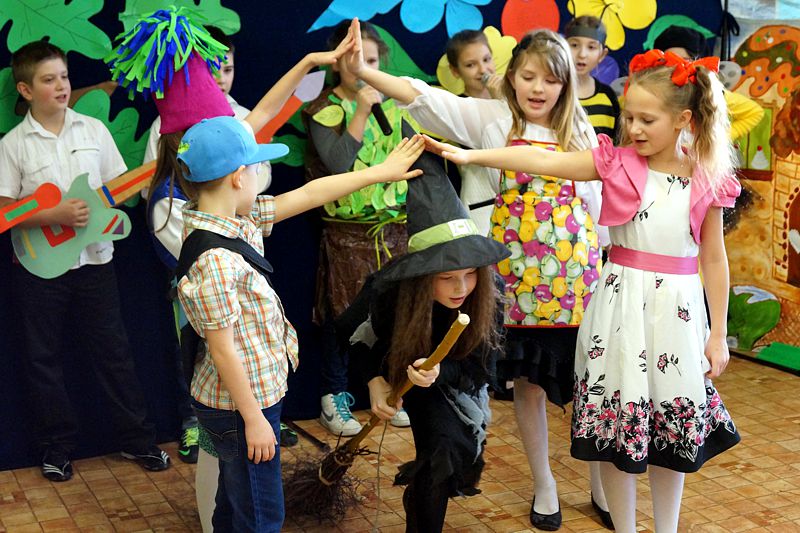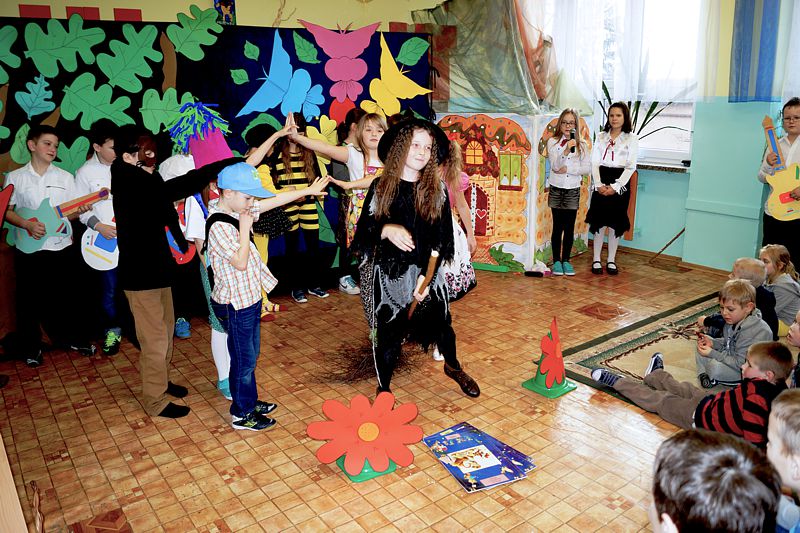 Uczniowie klasy III c (wych. Iwona Rubacha) z pewnością zapamiętają spotkanie integracyjne pod hasłem „Z uśmiechem przez życie”. W wydarzeniu tym uczestniczyli ich rodzice, rodzeństwo, uczniowie klas 0 – III, ich opiekunowie, pracownicy, a także wychowankowie Niepublicznego Przedszkola Specjalnego w Hrubieszowie. Głównym punktem programu był teatrzyk pt. „Jak dzieci i skrzaty wychowały Babę Jagę”, w którym zaprezentowano grę sceniczną, tańce, śpiew oraz grę na instrumentach.
