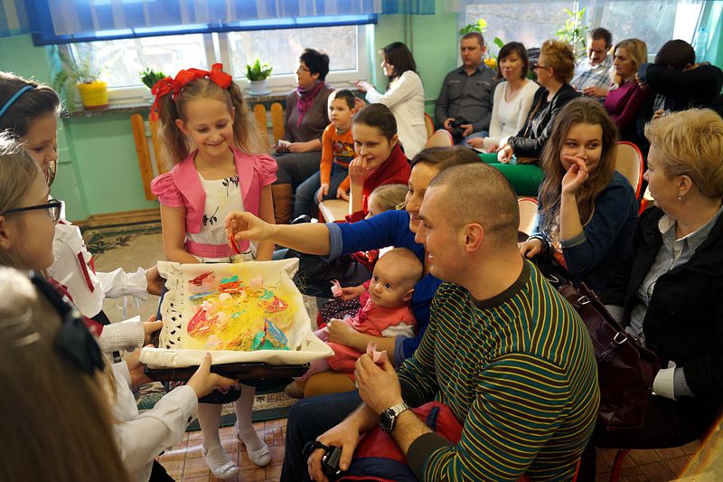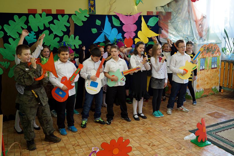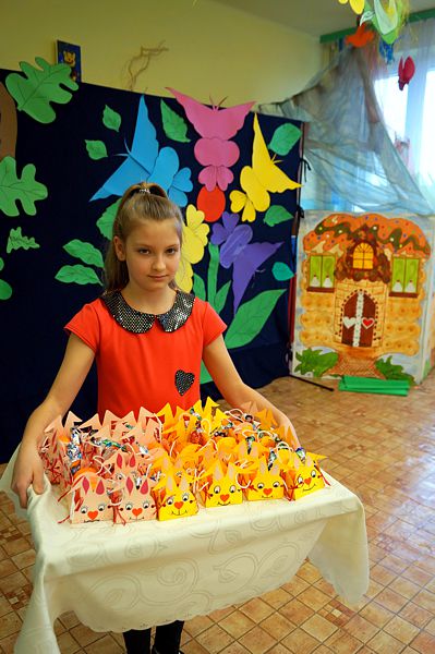 Miłym zaskoczeniem dla gości okazała się wróżba, polegająca na losowaniu papierowych zwierzaków. Słoń oznaczał pomyślność, ślimak - czas wolny i odpoczynek, koniczynka – szczęście, a biedronka - radosną wiadomość. Mali widzowie z przedszkola otrzymali kolorowe króliki wypełnione pysznościami. Oni również pomyśleli o niespodziance. W podzięce wręczyli pani dyrektor szkoły oraz wychowawczyni klasy własnoręcznie wykonane bukiety kwiatów, a koleżankom i kolegom - słodycze. Bajkowa atmosfera udzieliła się wszystkim. Radość, zadziwienie i poczucie dumy „wirowały” wokół dorosłych i ich pociech. Taki stan daje ogromną nadzieję na przyszłość.