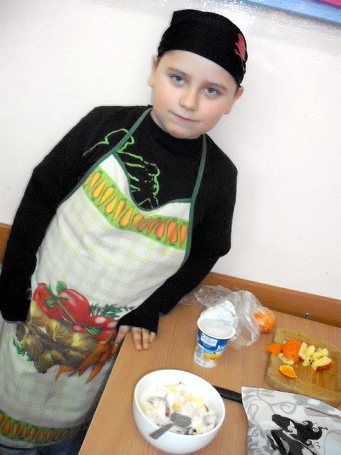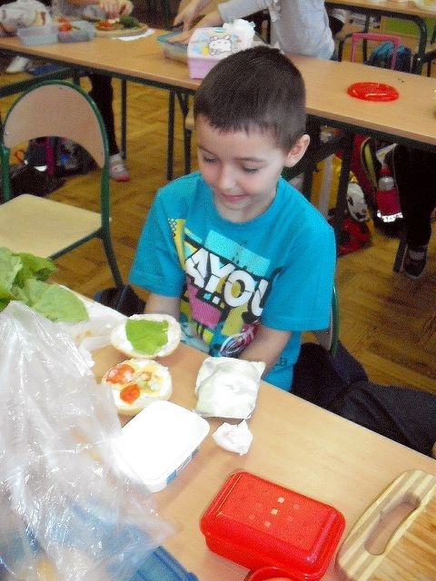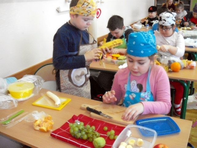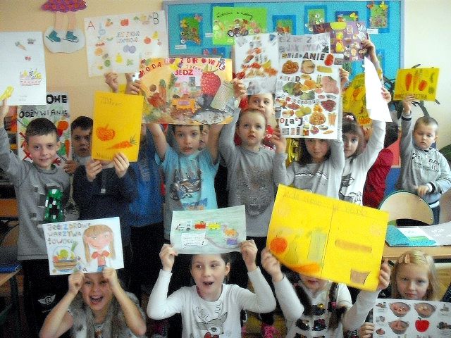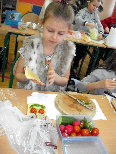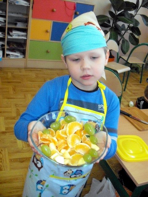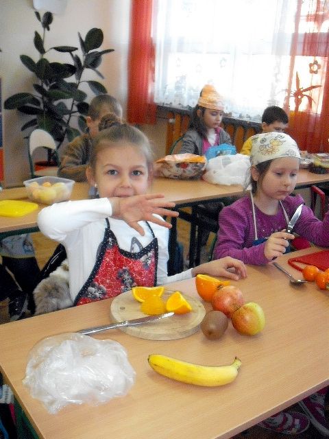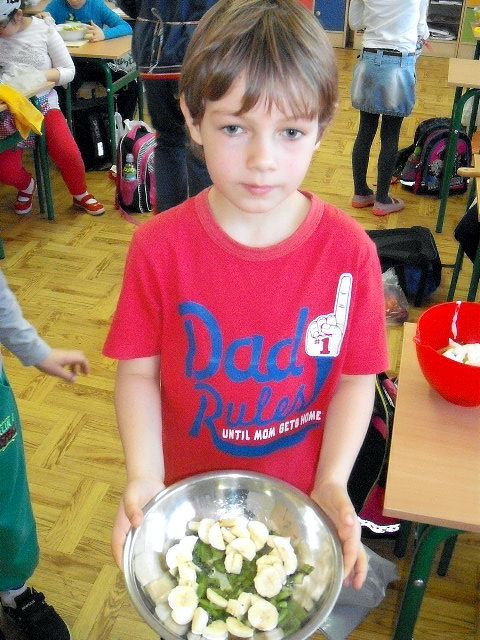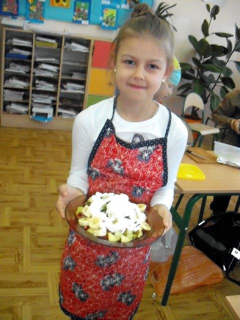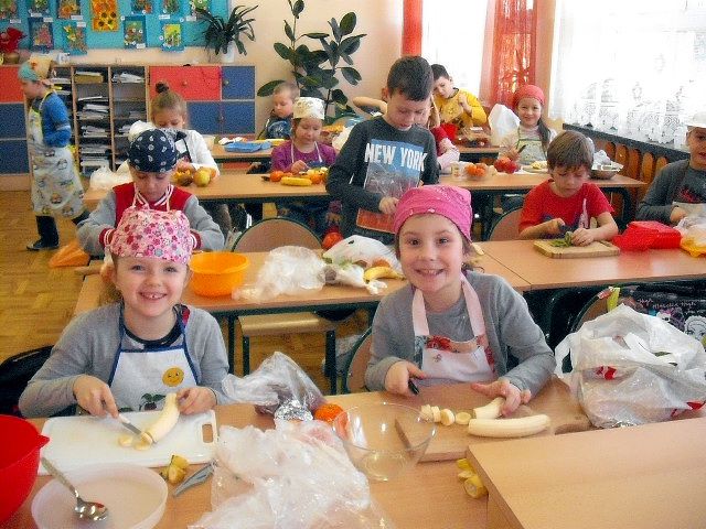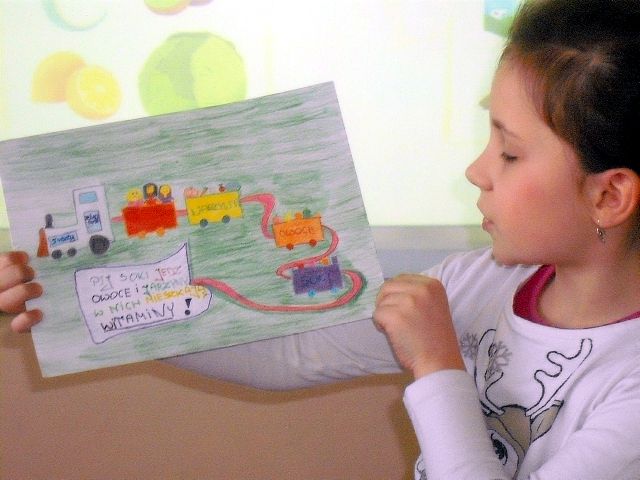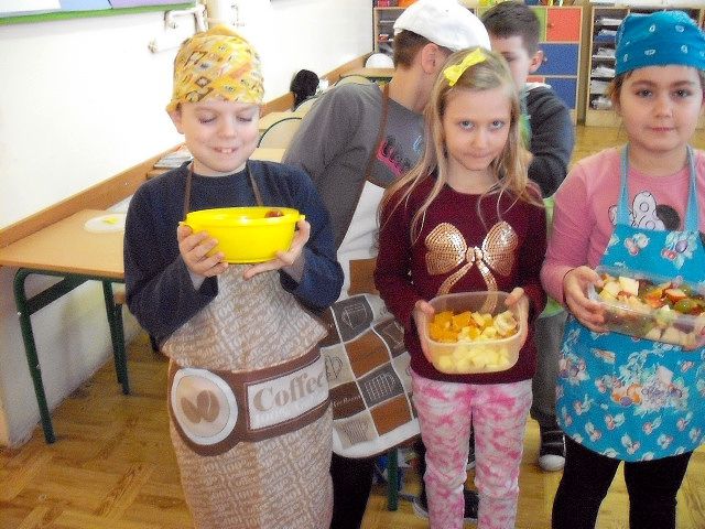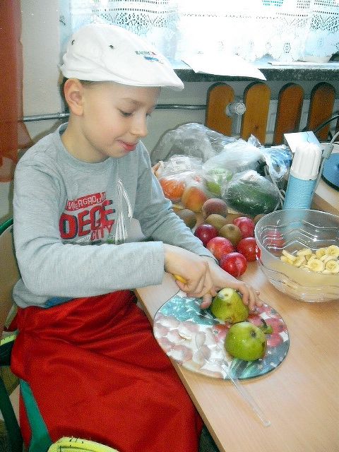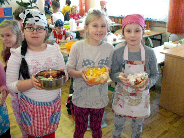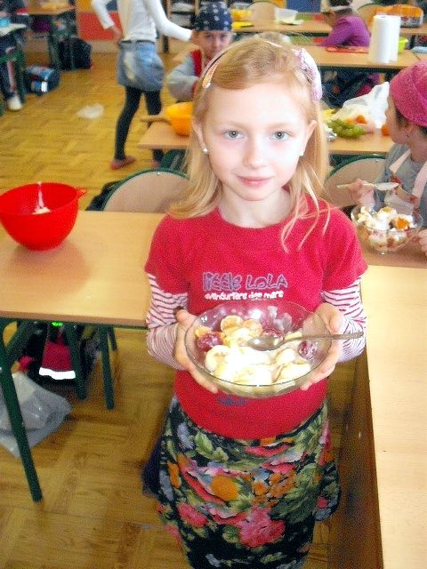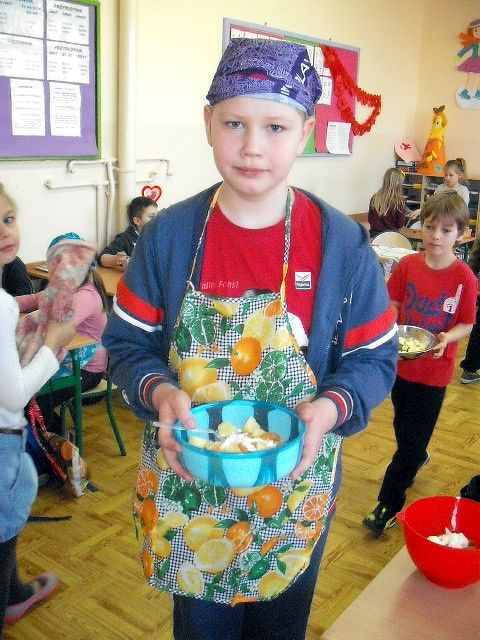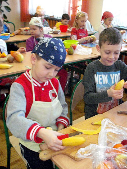 Realizując program Unii Europejskiej „Owoce w szkole” w klasie I a odbyły się zajęcia w czasie, których każdy wykazał się inwencją twórczą oraz bogactwem wiedzy na temat owoców, ich spożywania oraz roli jaką pełnią w naszym odżywianiu. Wielką atrakcją dla dzieci było przygotowanie „owocowego przysmaku”, a że zrobiony własnoręcznie - rozbudził u nich niesamowity apetyt. Radości było wiele w przygotowaniu, a potem w jedzeniu. W ramach programu, który realizuje szkoła OWOCE W SZKOLE dzieci z klasy I a przygotowały również plakaty i hasła promujące zdrowe odżywianie oraz wykonały samodzielnie pyszne, zdrowe i kolorowe kanapki.