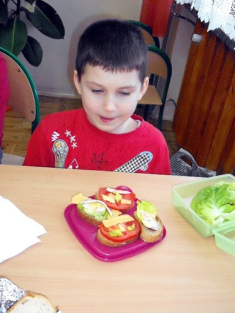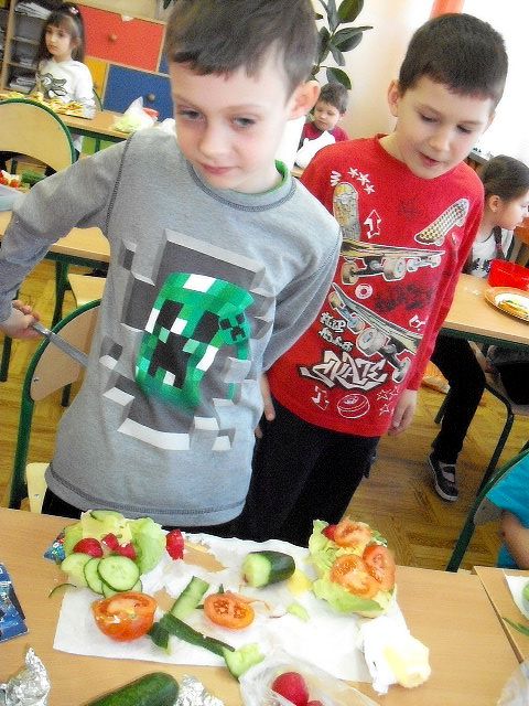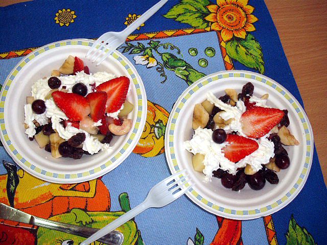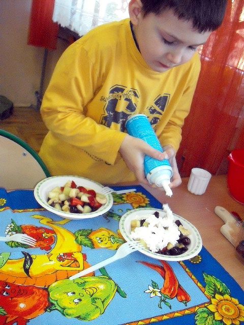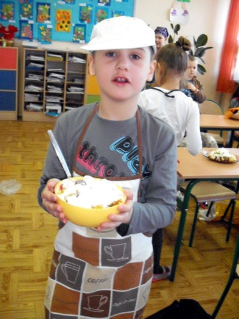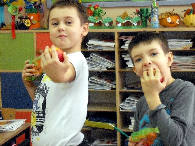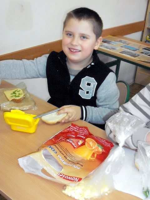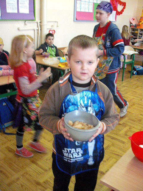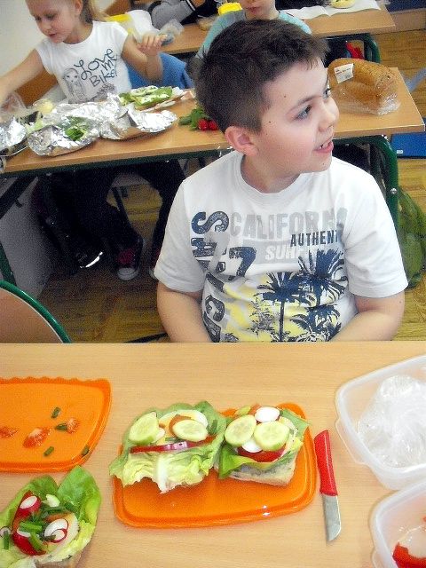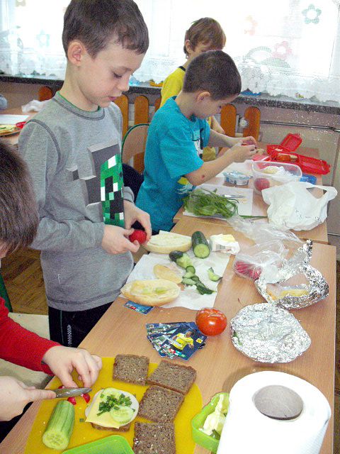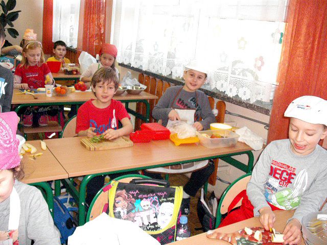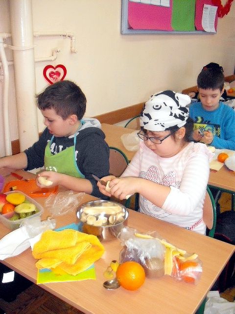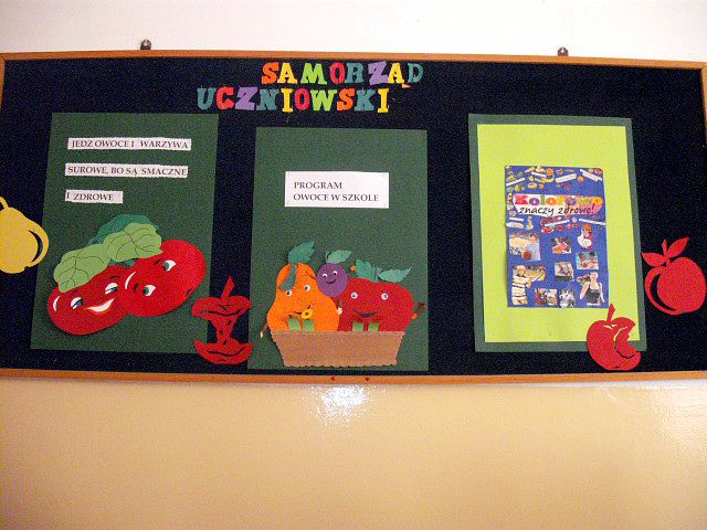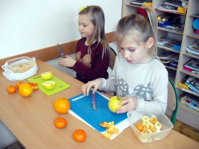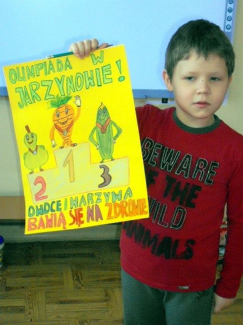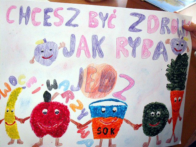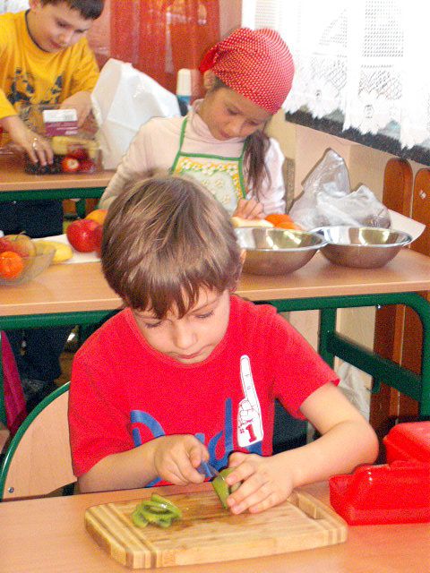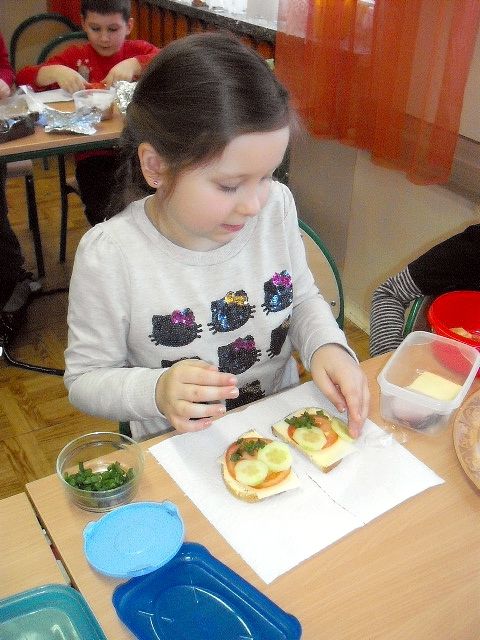 Realizując program Unii Europejskiej „Owoce w szkole” w klasie I a odbyły się zajęcia w czasie, których każdy wykazał się inwencją twórczą oraz bogactwem wiedzy na temat owoców, ich spożywania oraz roli jaką pełnią w naszym odżywianiu. Wielką atrakcją dla dzieci było przygotowanie „owocowego przysmaku”, a że zrobiony własnoręcznie - rozbudził u nich niesamowity apetyt. Radości było wiele w przygotowaniu, a potem w jedzeniu. W ramach programu, który realizuje szkoła OWOCE W SZKOLE dzieci z klasy I a przygotowały również plakaty i hasła promujące zdrowe odżywianie oraz wykonały samodzielnie pyszne, zdrowe i kolorowe kanapki.