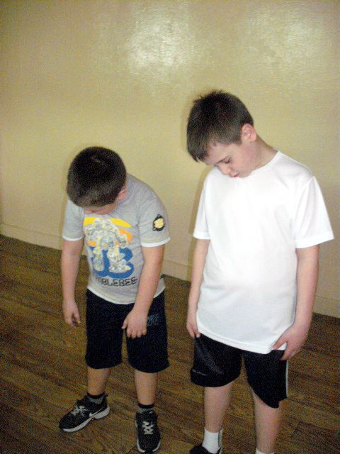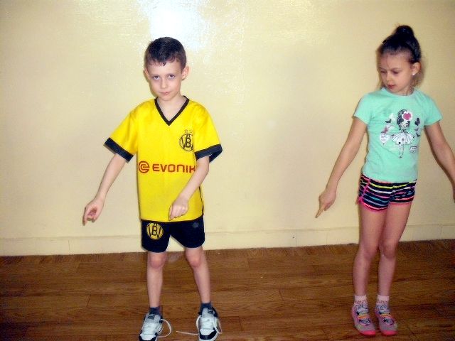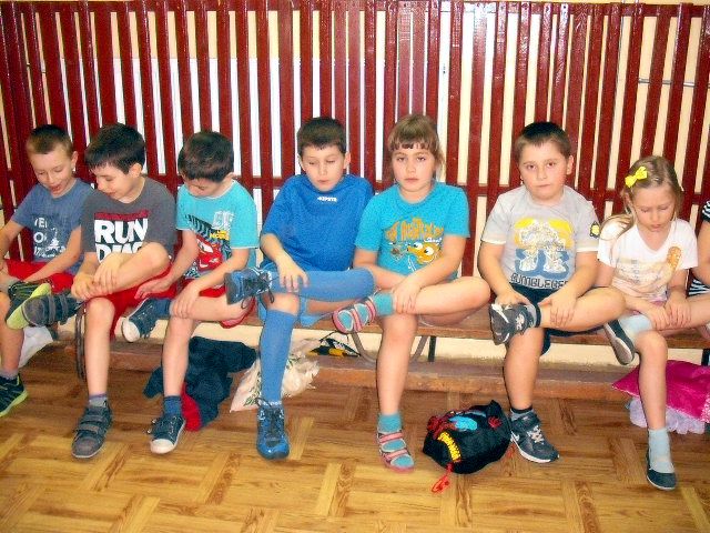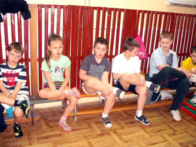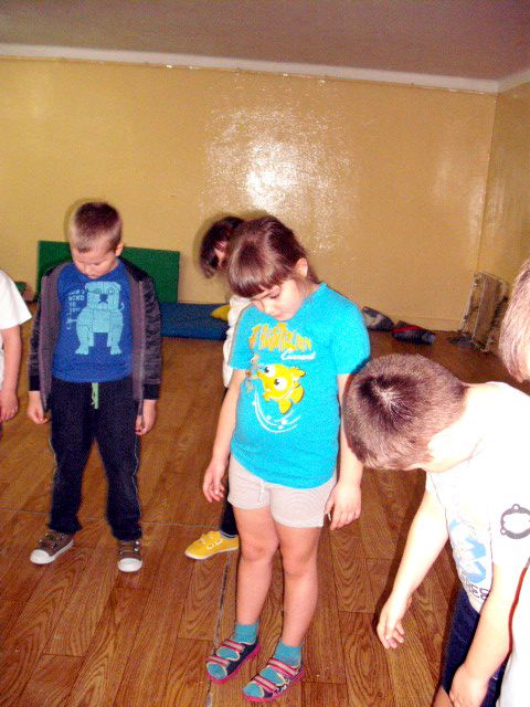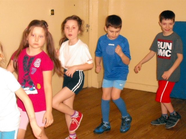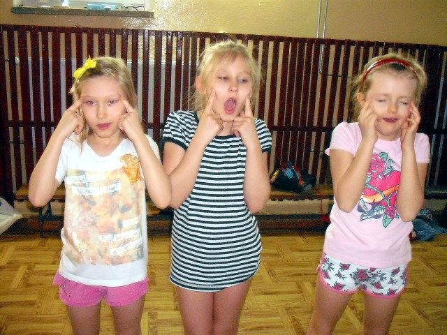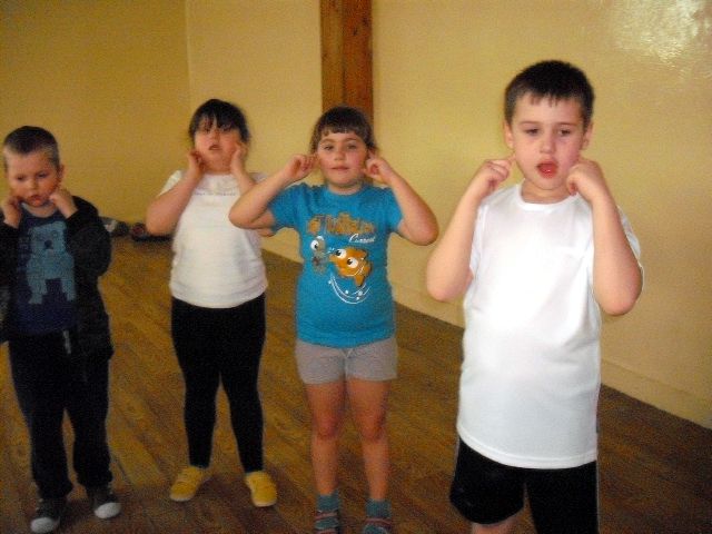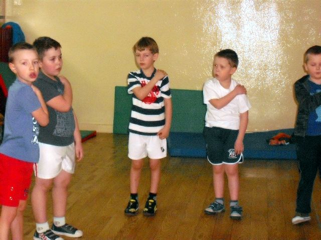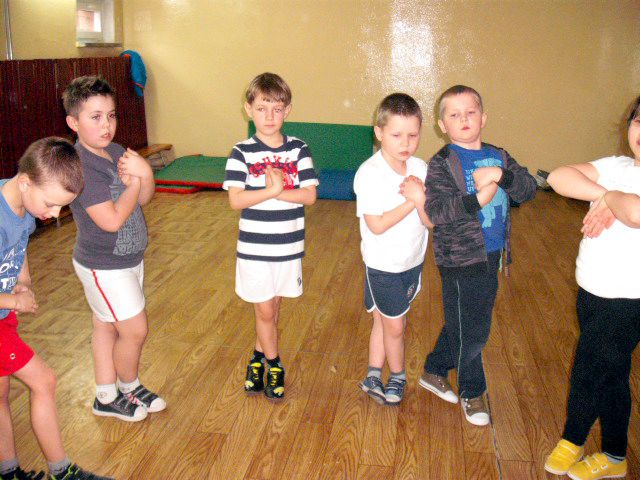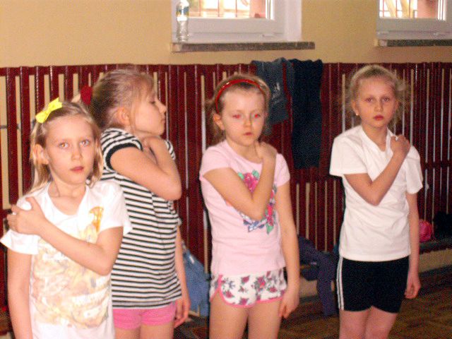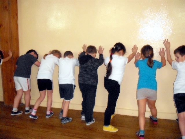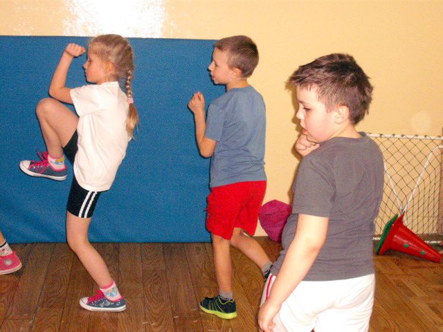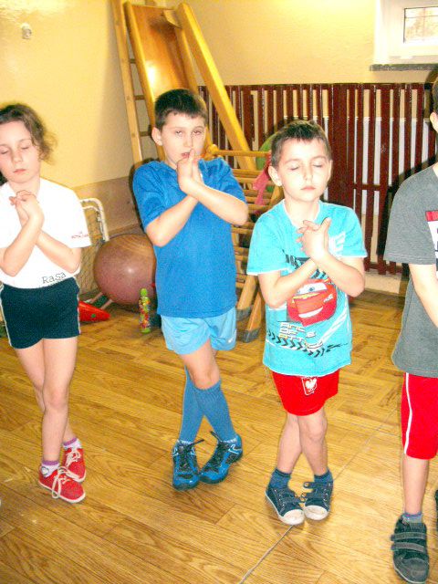 Uczniowie klasy I a wych. Agnieszka Handziuk aktywnie biorą udział w zajęciach z gimnastyki mózgu Paula Dennisona.