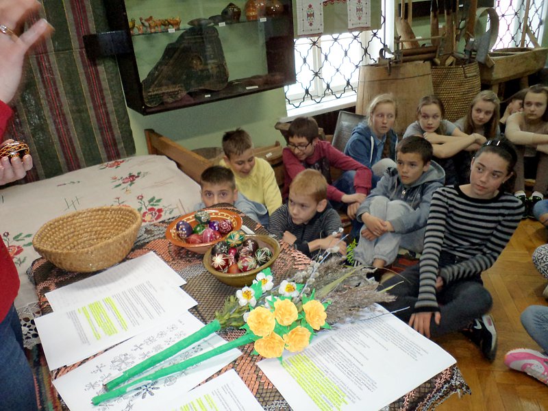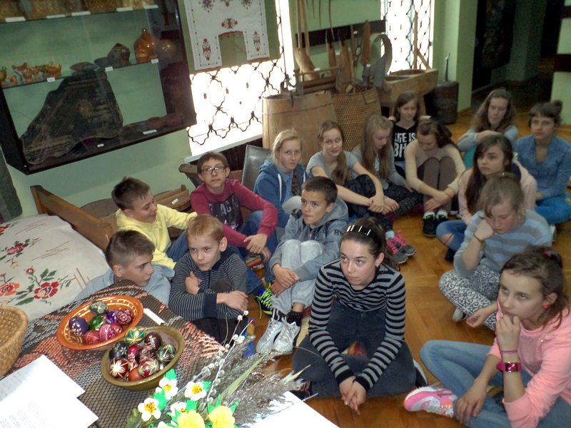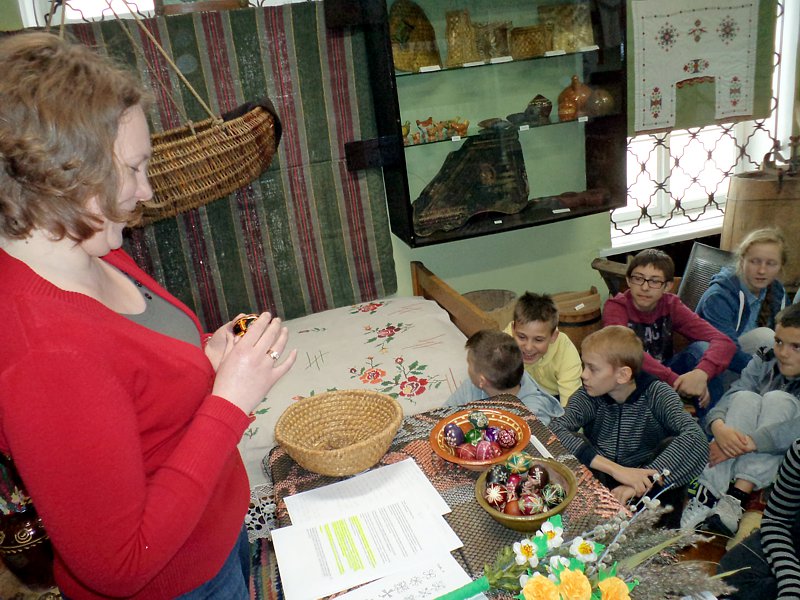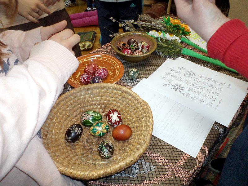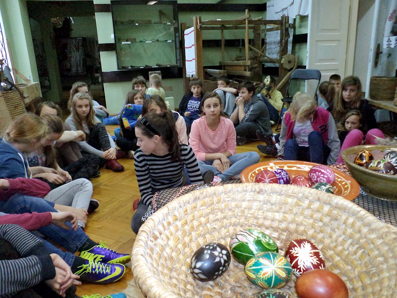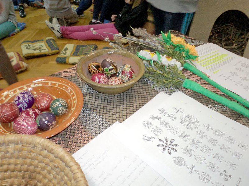Ciekawostką była opowieść o jajkach - pisankach wykonywanych przez słynnego jubilera Faberge. Ich wartość przekracza obecnie kwotę 30 milionów dolarów. Na uwagę zasługuje fakt, że ostatnio znaleziono jedno z nich na ... targu staroci. Później p. B. Bitner zaczęła opowiadać o zwyczajach świątecznych, które w wielu regionach przetrwały po dzień dzisiejszy. Szczególnym zainteresowaniem cieszyło się to, co związane było z potrawami, śmigusem-dyngusem, z zabawami przy stole i na świeżym powietrzu.