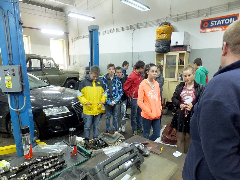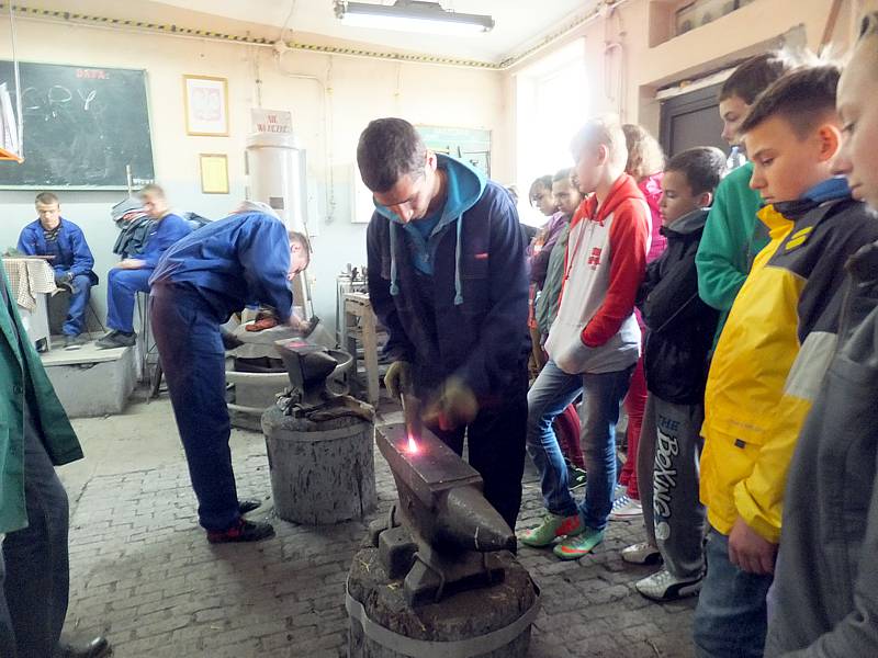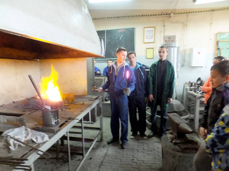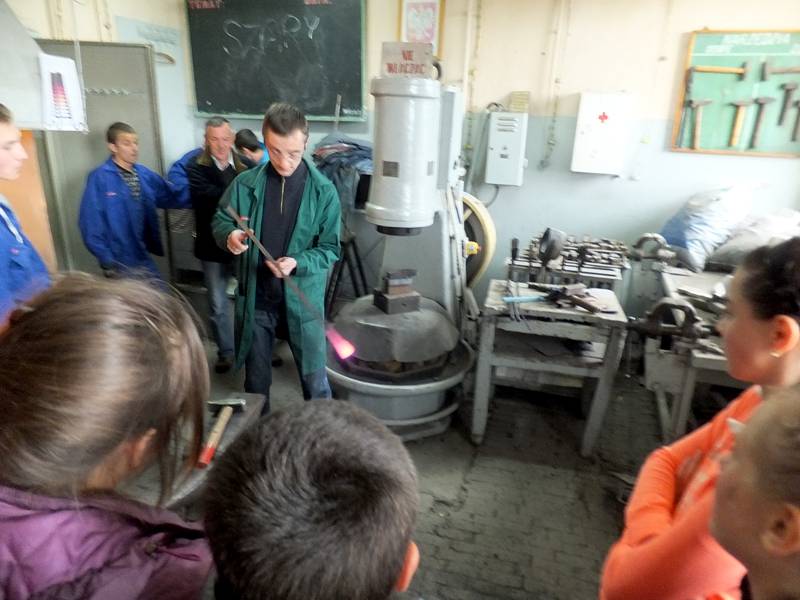 14 maja 2014r. klasa VI a wraz z wychowawcą udała się do Zespołu Szkół nr 1, by przyjrzeć się zajęciom uczniów i miejscom, w których zdobywają wiedzę i umiejętności. Pierwsze kroki skierowaliśmy do pracowni, w której to dokonuje się obróbki materiałów. Ujrzeliśmy namiastkę kuźni, w której żarzył się koks, niezbędny do formowania metalu. Później zapoznaliśmy się z podstawami metalurgii. Na zakończenie trafiliśmy do ogromnego warsztatu samochodowego, w którym to serwisuje się pojazdy.