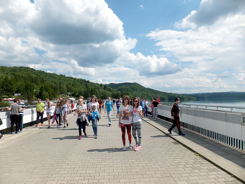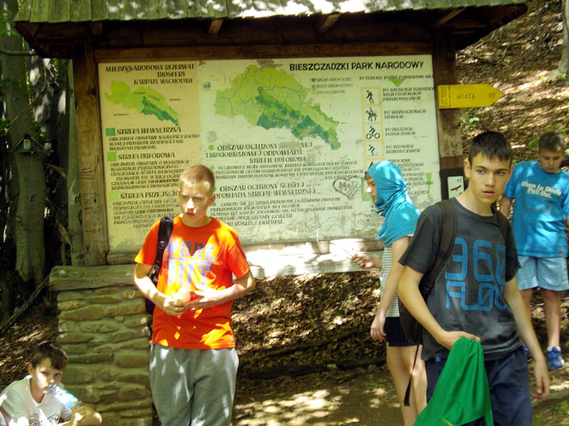 W dniach 21-23. 05. 2014 r. odbyła się szkolna wycieczka, w której wzięli udział uczniowie z klas: IV b, VI a, VI c i z gimnazjum. Wyjazd sprzed szkoły miał miejsce o godz. 6.00. Po pięciu godzinach jazdy byliśmy już w górach. Najpierw zatrzymaliśmy się w Ustrzykach Dolnych, gdzie znajduje się kompleks basenów. Po godzinnej zabawie w wodzie pojechaliśmy w kierunku ogromnej zapory, by przy okazji dowiedzieć się o tajnikach jej budowy. Po przejściu przez nią skierowaliśmy się do miejsc, w których można było zakupić ciekawe i oryginalne pamiątki z gór. Obładowani zakupami weszliśmy do autokaru, by udać do Polańczyka.