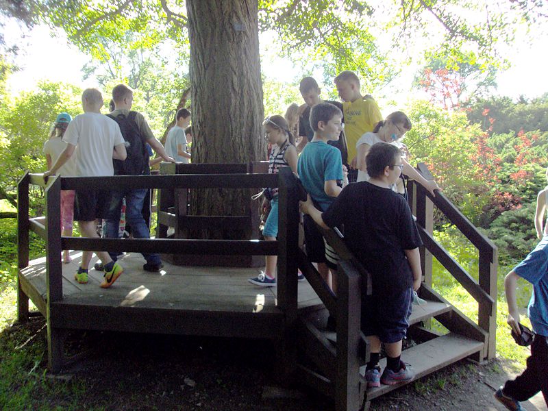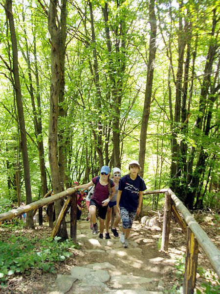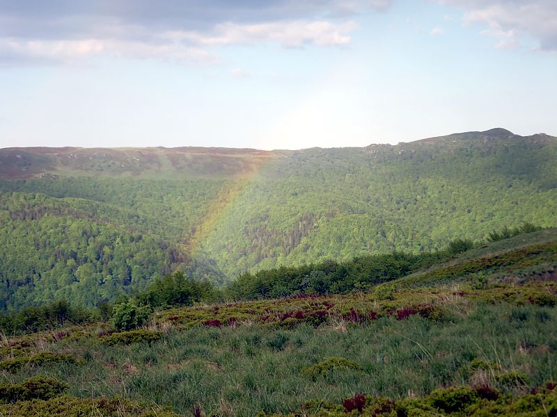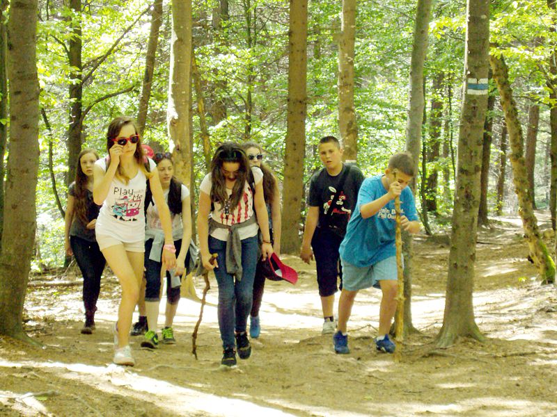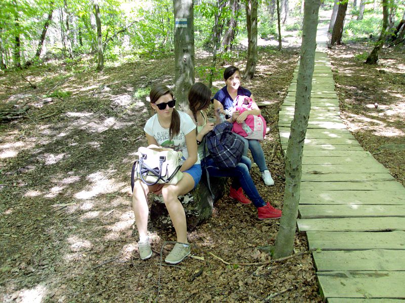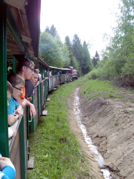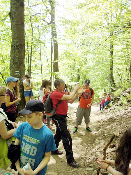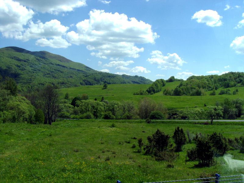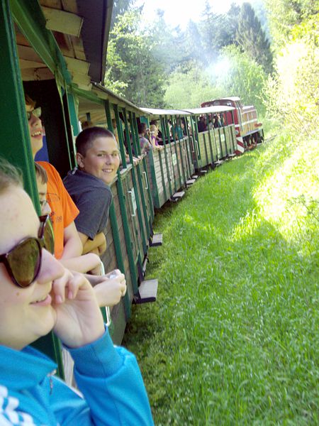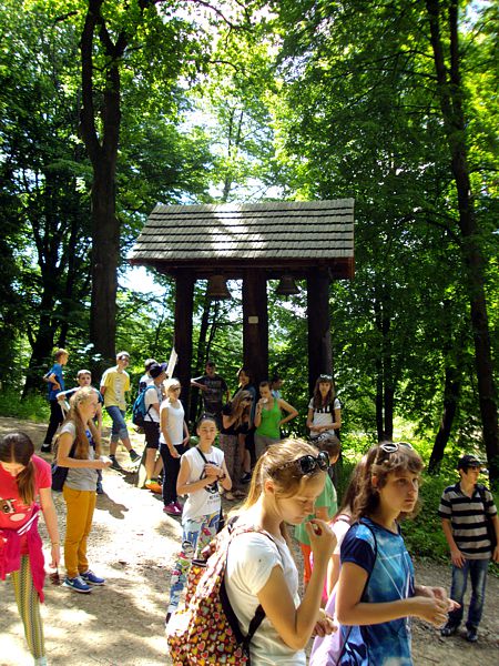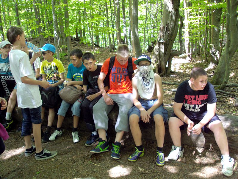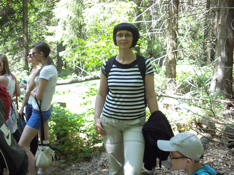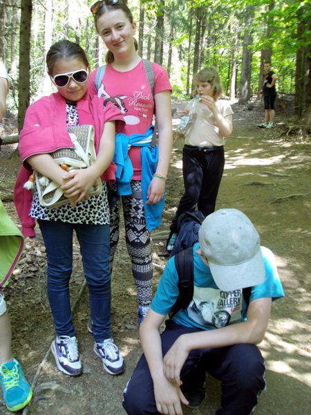 Następny dzień też dostarczył nam niezapomnianych przeżyć. Tuż po śniadaniu pojechaliśmy do Cisnej, by odbyć przejażdżkę kolejką bieszczadzką. Piękne widoki zauroczyły wszystkich. Po wyjściu z kolejki czekał nas przejazd Pętlą Bieszczadzką przez Czarne Lutowiska do Wołosatego. To tu spotkaliśmy się z z górskim przewodnikiem, który zaproponował nam wejście na najwyższy szczyt polskich Bieszczad- Tarnicę ( 1346 m n.p.m.). Po krótkiej rozmowie ruszyliśmy w trasę, która prowadziła przez bieszczadzkie lasy . Po drodze niejednokrotnie zatrzymywaliśmy się , by nabrać sił i posłuchać opowieści o ludziach z gór, o wilkach i niedźwiedziach. Po dwóch godzinach byliśmy już na szczycie, skąd roztacza się cudowny widok na Bieszczady. Upojeni przepięknym krajobrazem, dumni z osiągniętego celu ruszyliśmy w drogę powrotną. Tym razem towarzyszył nam deszcz. Gdy byliśmy już u podnóża gór, blisko Ustrzyk Górnych, ujrzeliśmy piękną tęczę, która nieśmiało wynurzyła się ze wzgórz. Później udaliśmy się do Bukowca, gdzie czekano na nas z obiadokolacją.