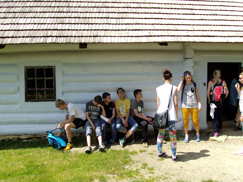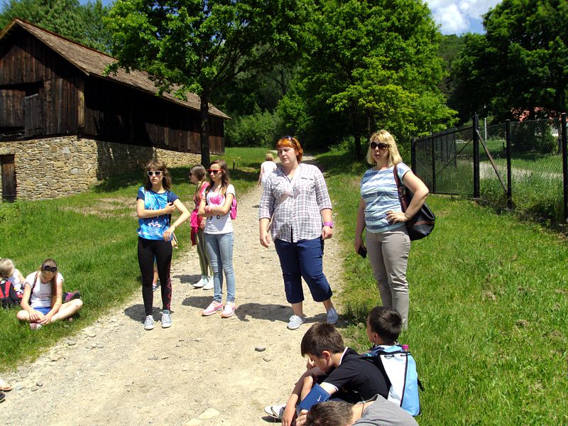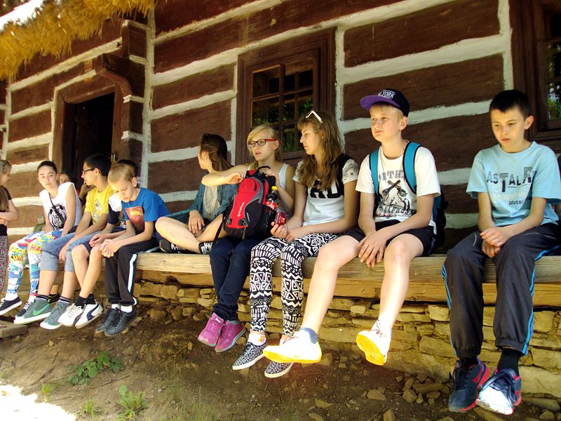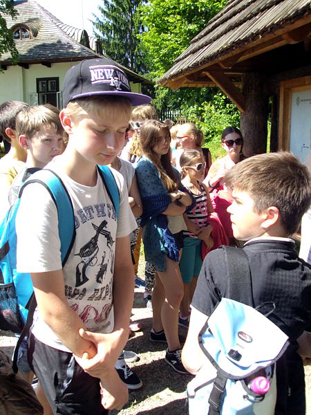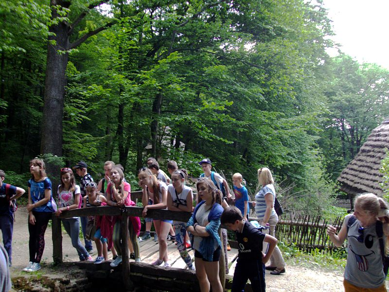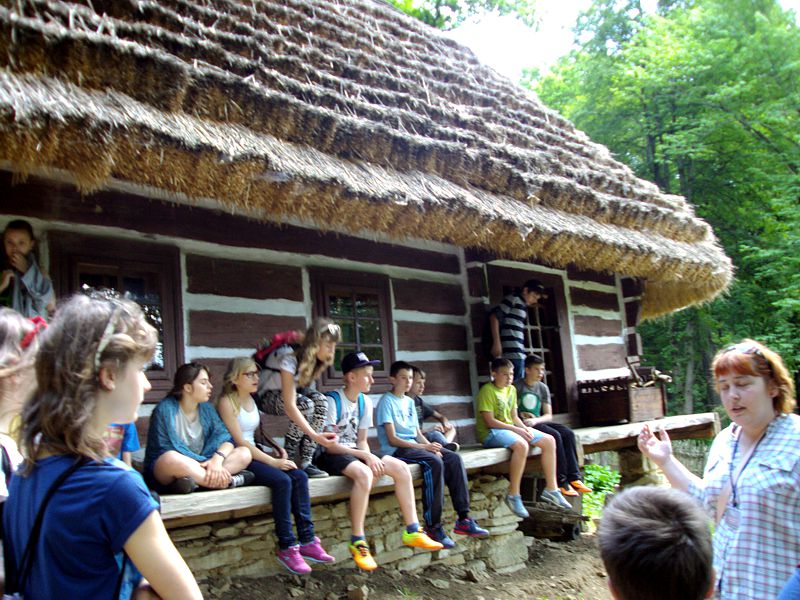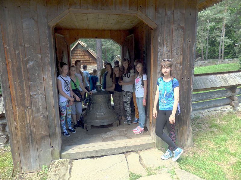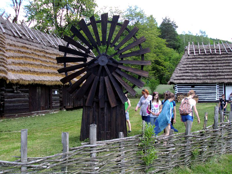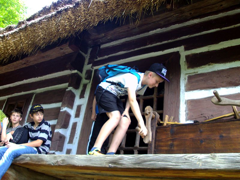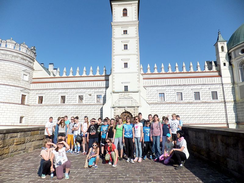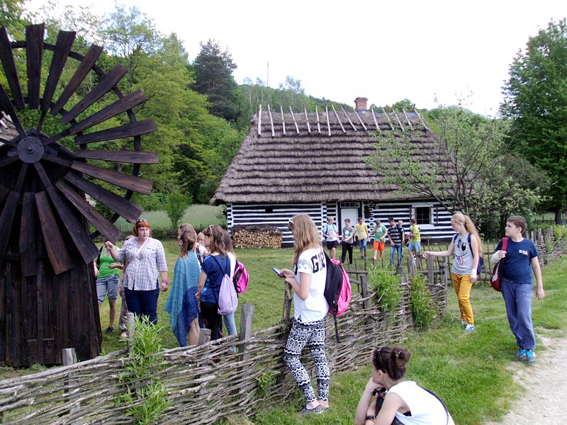 Ostatni dzień stał pod znakiem Sanoka i Krasiczyna. W tej pierwszej miejscowości znajduje się niezwykle okazały, największy w Polsce skansen. Wraz z przewodnikami udaliśmy się na spacer, który trwał dwie godziny. Podczas niego mieliśmy wrażenie, że cofnęliśmy się w czasie. Ujrzeliśmy m. in. wiatraki, młyn, wiejskie chałupy , szlacheckie dworki, zabytkową cerkiew , plebanię, galicyjską szkółkę, urządzenia do wydobywania ropy naftowej. Wraz z przewodnikiem byliśmy także w muzeum ikon, w pracowni zegarmistrza, a nawet w zakładzie fryzjerskim. Po zwiedzeniu skansenu udaliśmy się do Krasiczyna, do zamku Sapiehów. Przewodnik, z którym spotkaliśmy się na dziedzińcu, opowiedział nam w sposób bardzo interesujący o historii zamku, losach jego właścicieli. Oprowadził nas po komnatach, a także podziemiach, w których trzymano złoczyńców i osoby posądzane o konszachty z diabłem. Po wysłuchaniu legend udaliśmy się do izby czeladnej, by przed powrotną drogą posilić się obiadem- schabowym z frytkami i surówką.